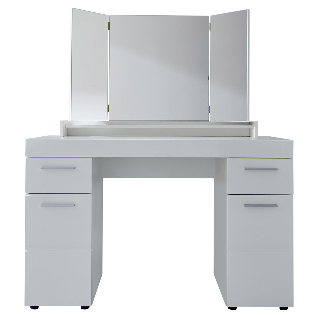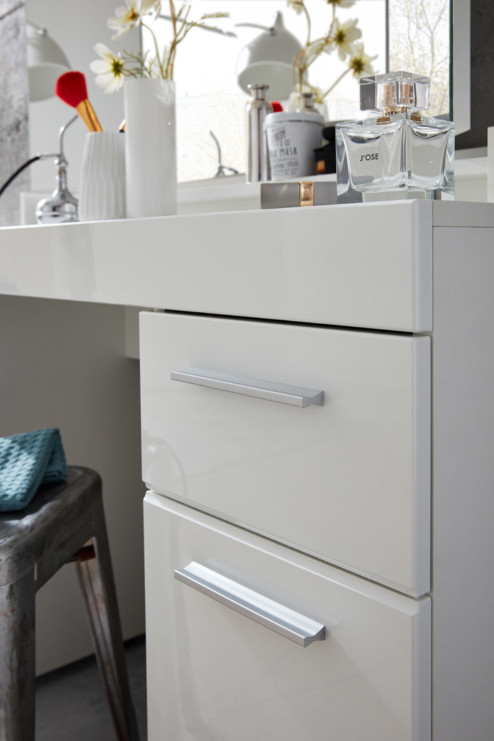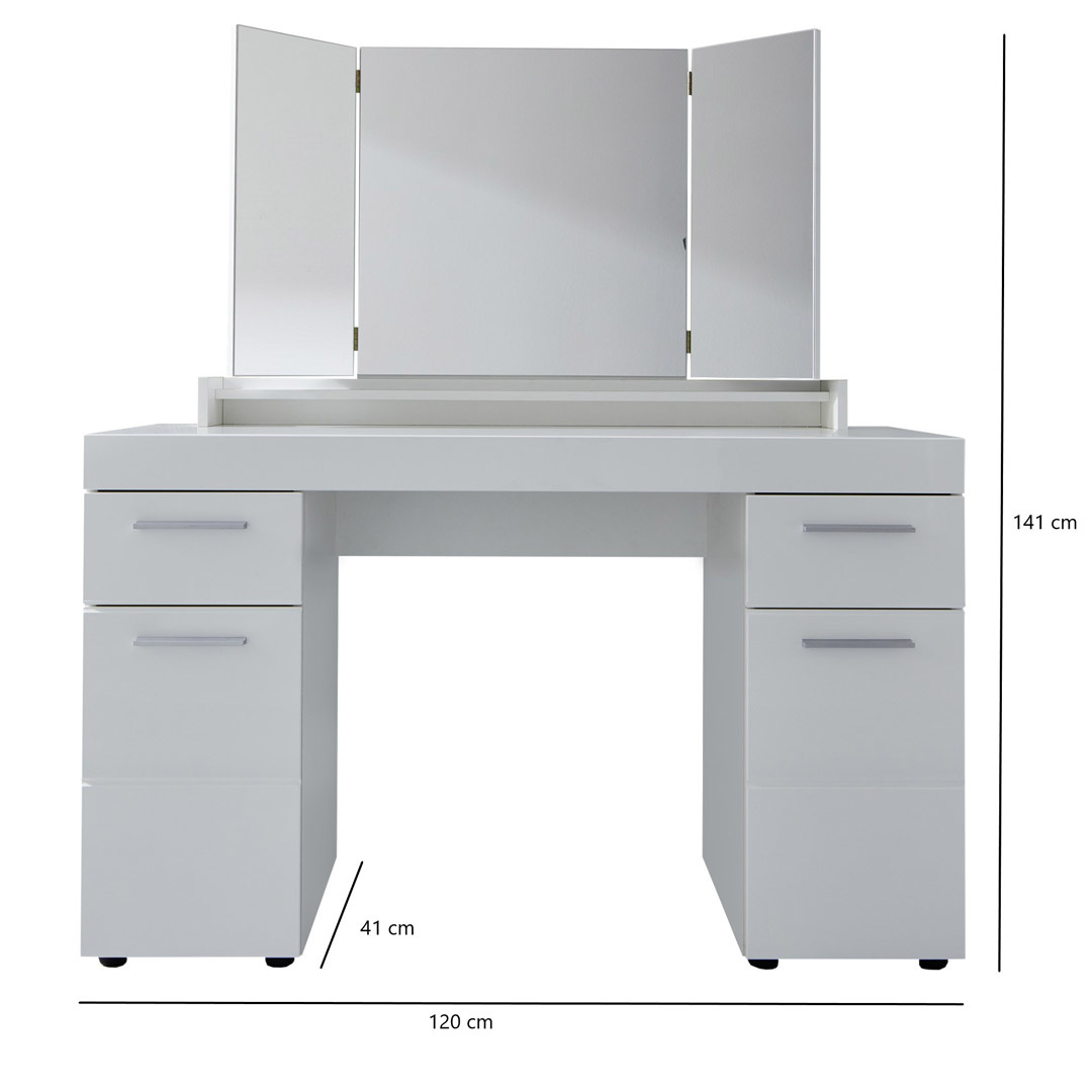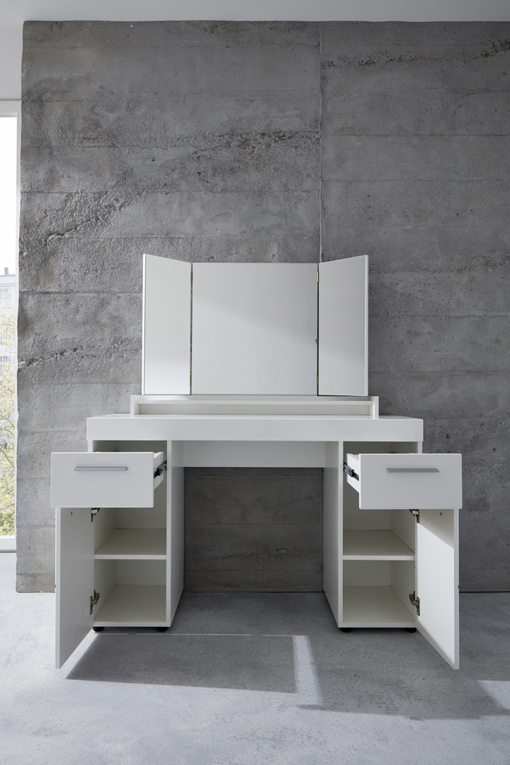 Amanda kaptafel 2 deuren, 2 laden, 1 open vak, spiegel wit, wit hoogglans.