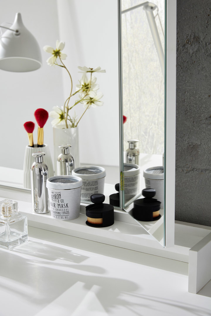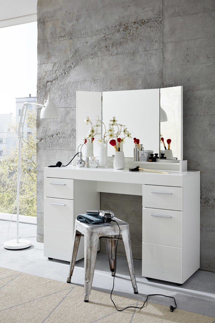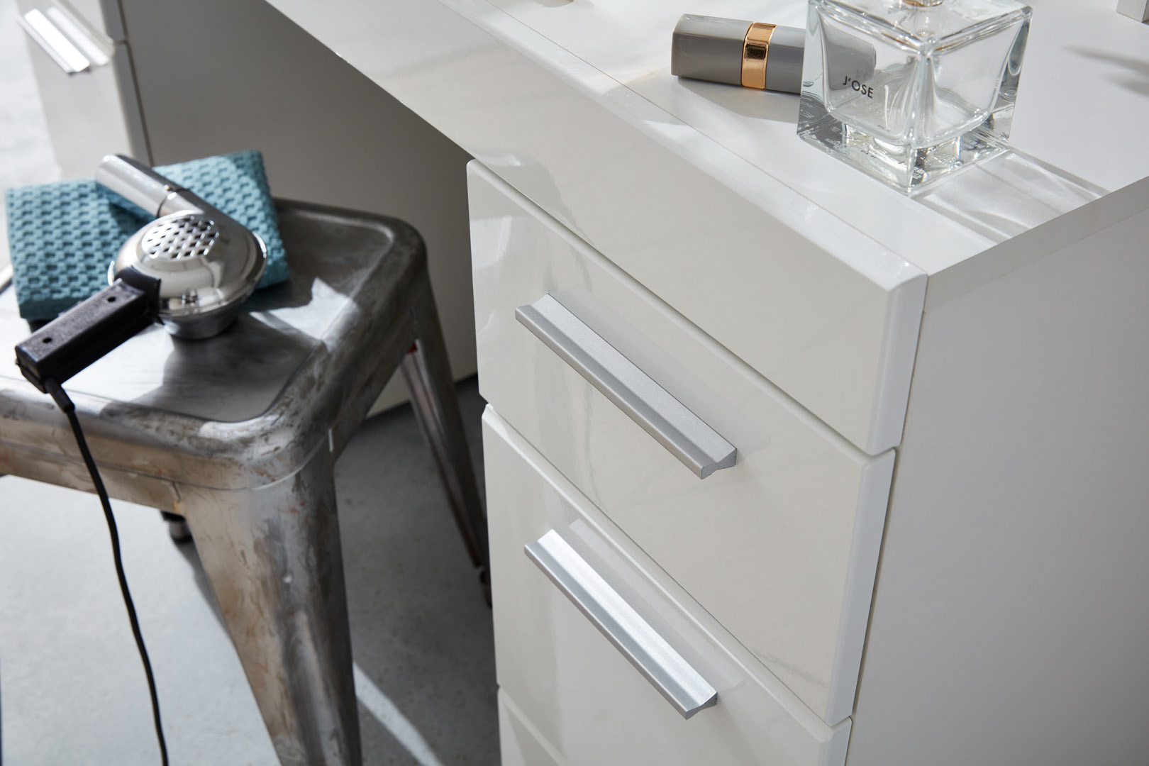 Amanda kaptafel 2 deuren, 2 laden, 1 open vak, spiegel wit, wit hoogglans.
