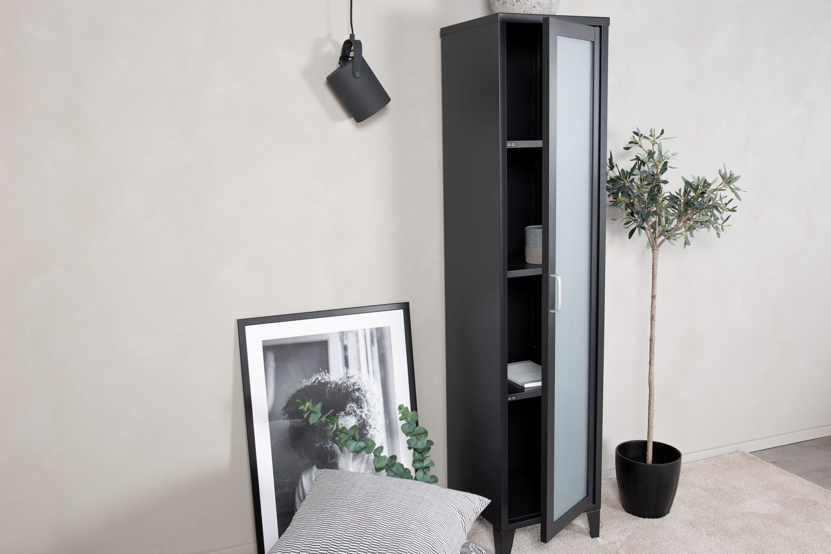 Acero vitrinekast 1 deur, 4 planken, zwart.
