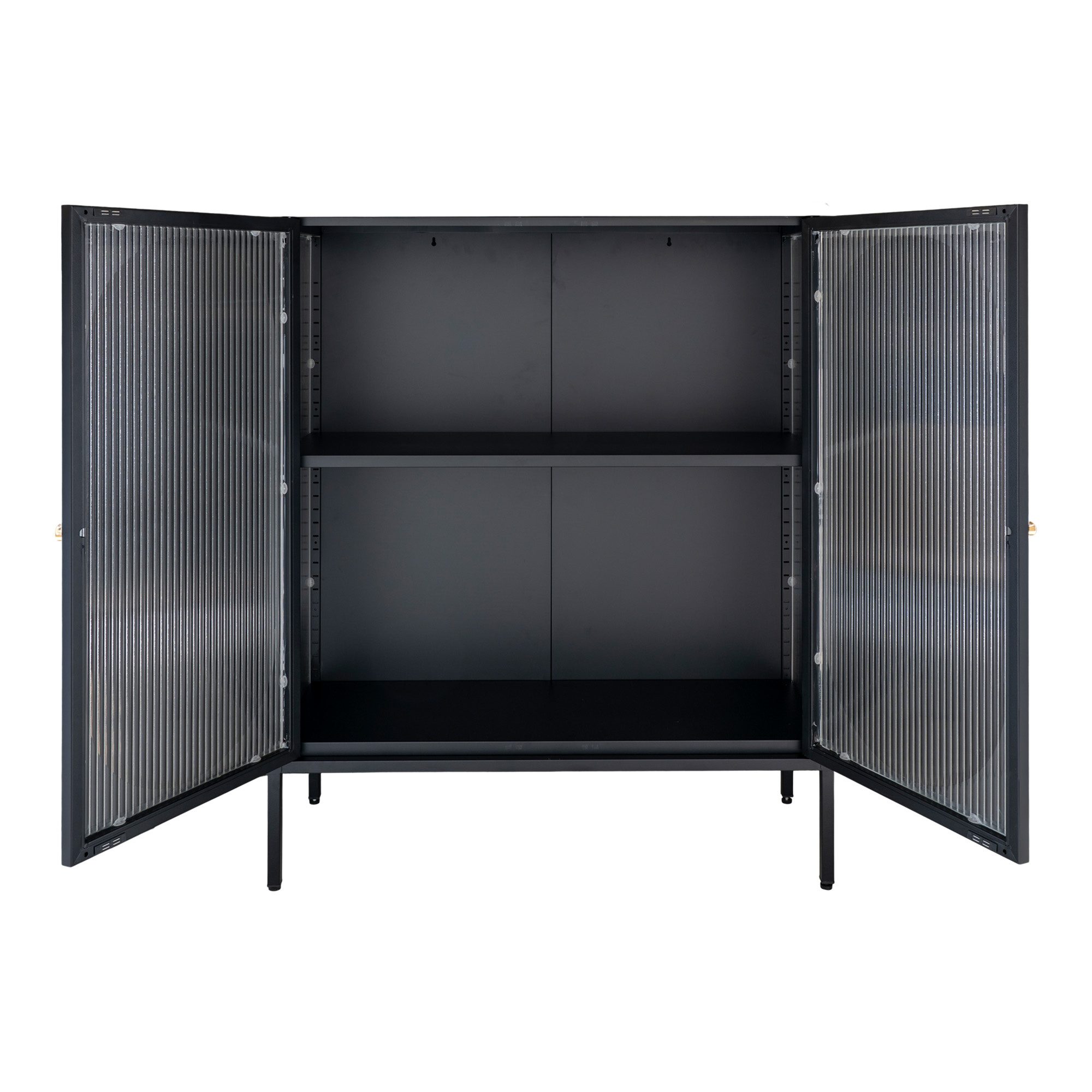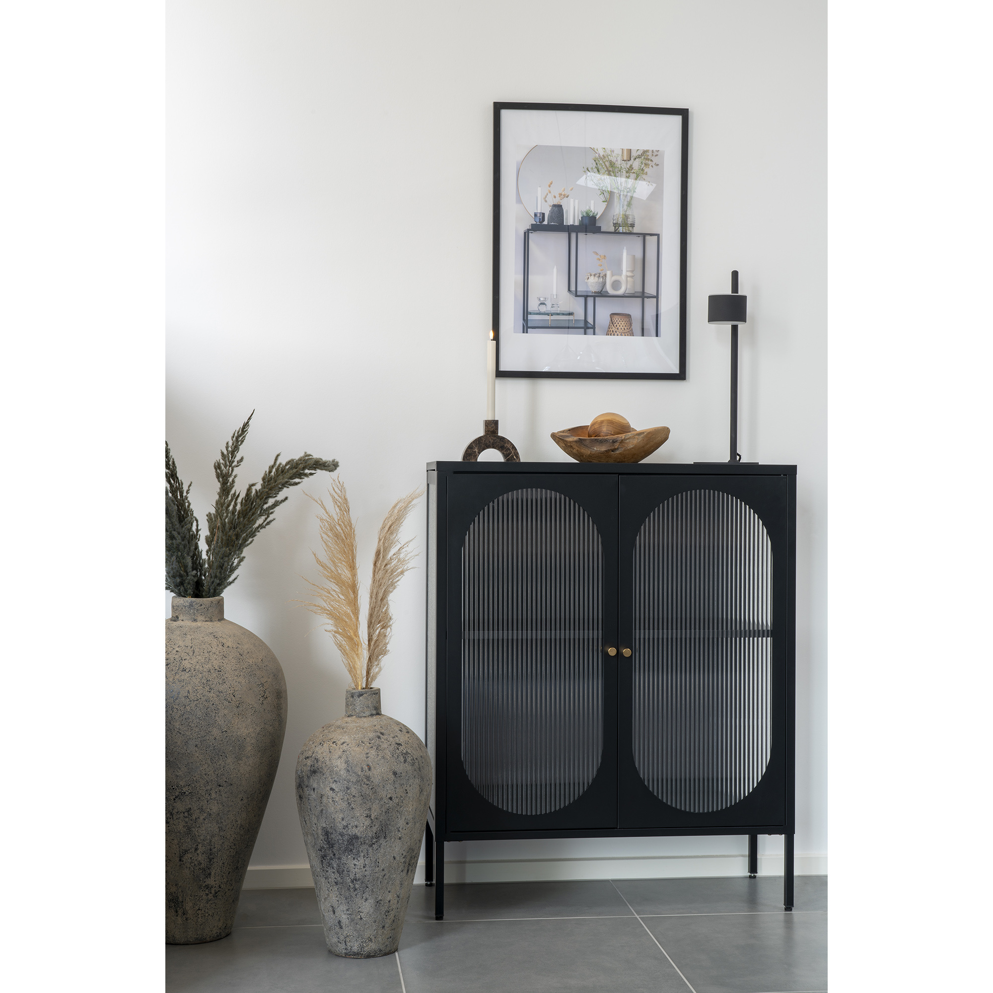 Adelaide vitrinekast laag 2 glazen deuren zwart.