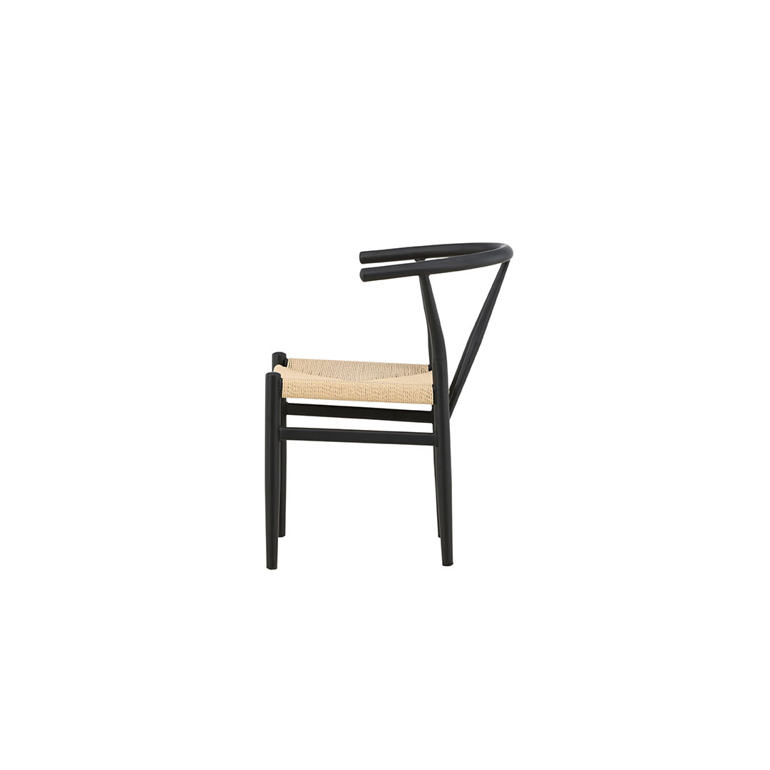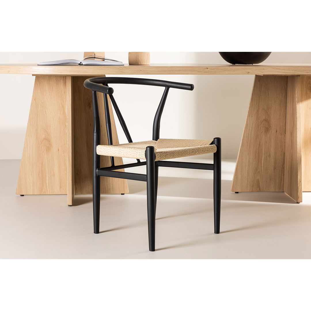 Alfons eetkamerstoel zwart is een eettafelstoel in de kleur zwart die zowel stijl als functionaliteit in je huis brengt. Alfons eetkamerstoel zwart. Alfons eetkamerstoel combineert stijl en functionaliteit op een elegante manier. Met een zitting in beige rotan en een frame van zwart staal geeft hij een tijdloos en klassiek gevoel aan je eettafel. Met Alfons krijg je niet alleen een comfortabele plek om te zitten en te genieten van je maaltijden, maar ook een kans om gemeenschap te creëren rond de tafel. De robuuste constructie en het solide materiaal maken Alfons klaar om in de toekomst vele diners en bijeenkomsten te doorstaan. Met zijn stijlvolle design past Alfons in verschillende interieurstijlen en voegt een vleugje elegantie toe aan uw huis. Of het nu gaat om alledaagse diners of feestelijke gelegenheden, Alfons is de perfecte eetkamerstoel voor het creëren van herinneringen en het delen van goede tijden met dierbaren. Dit product is gemaakt met oog voor detail, wat zowel esthetische aantrekkingskracht als hoge duurzaamheid garandeert. Het is ontworpen met zowel functionaliteit als stijl in gedachten, waardoor het de perfecte keuze is voor elke kamer in uw huis. De gebruikte materialen zijn van hoge kwaliteit, waardoor het product een lange levensduur heeft en bestand is tegen dagelijks gebruik. Of het nu voor opslag is of als decoratieve toevoeging, dit product zal uw interieur naar een hoger niveau tillen en extra comfort en elegantie in uw huis brengen.