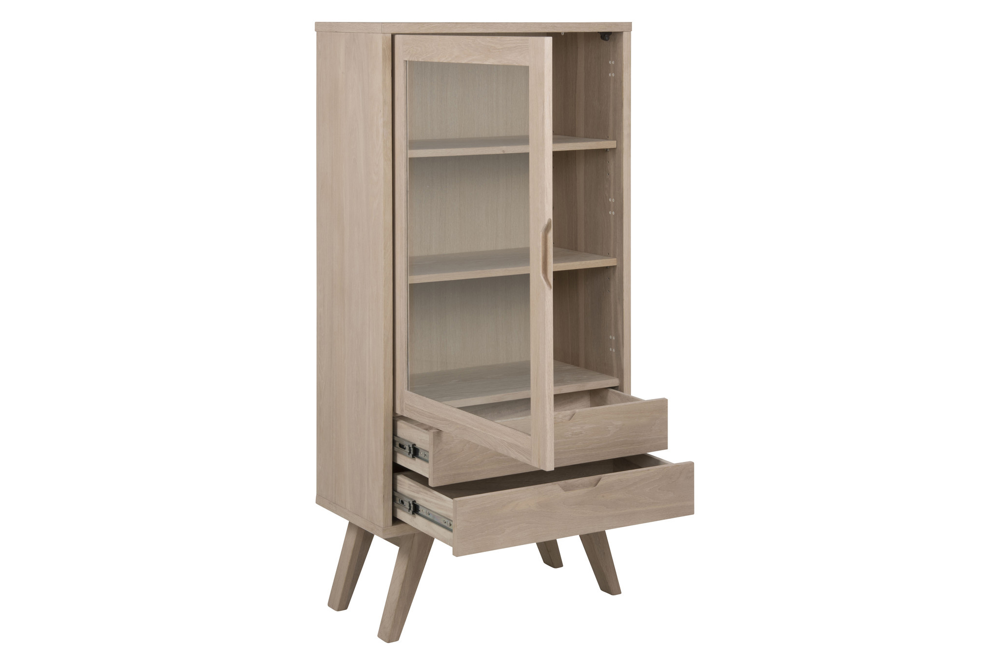 Align vitrinekast hoogte 145 cm, 1 glazen deur, 2 laden, eik.