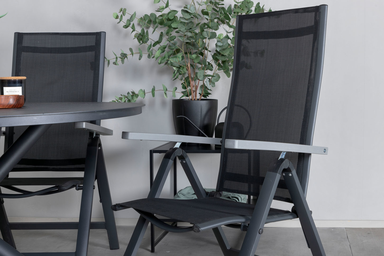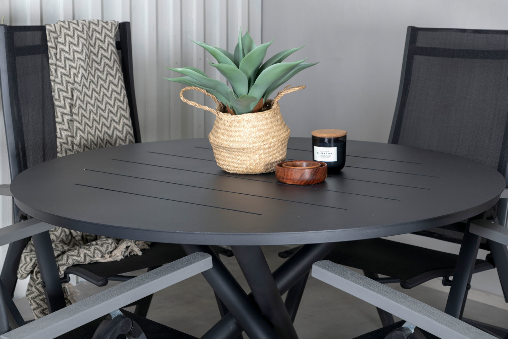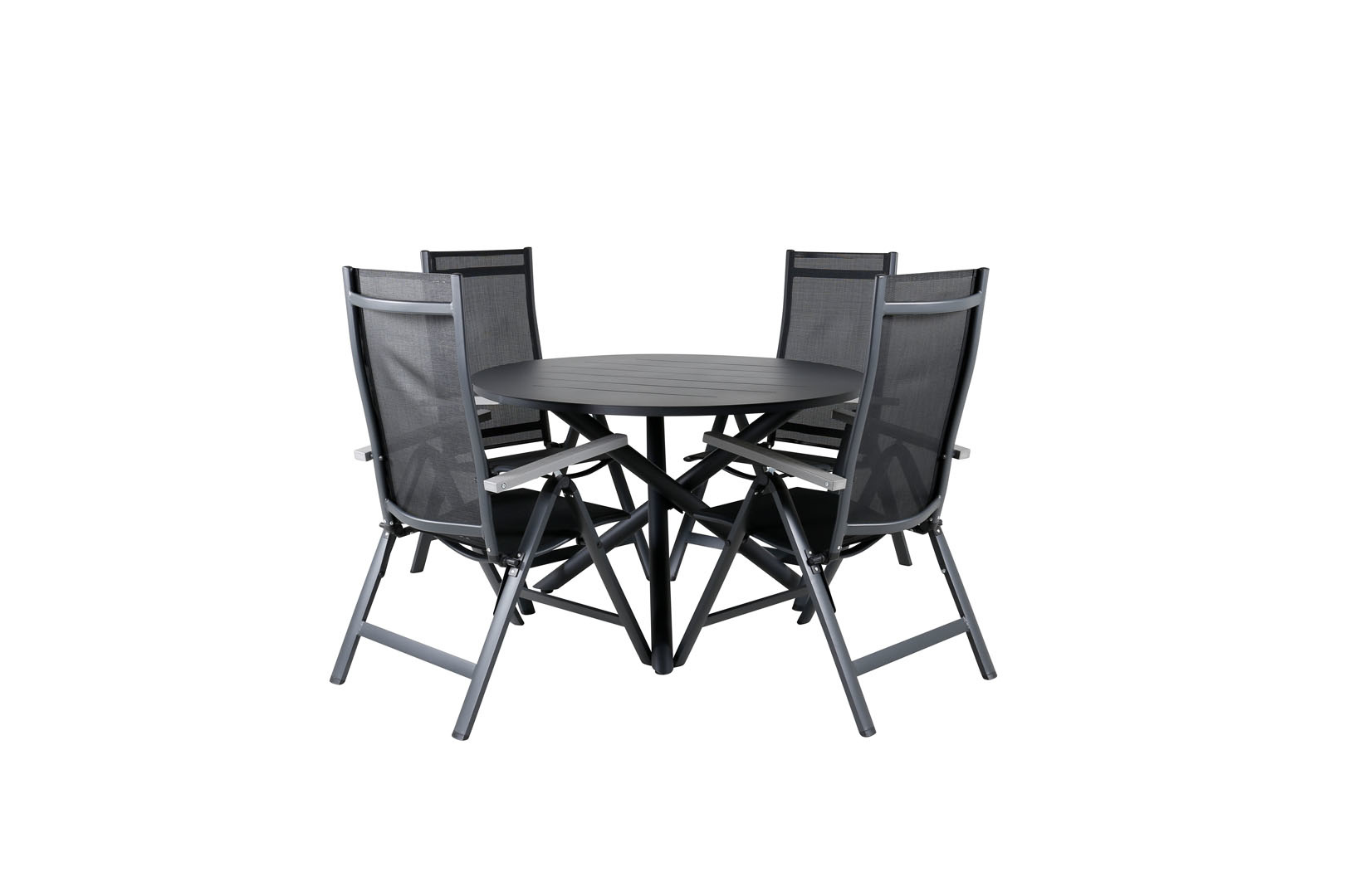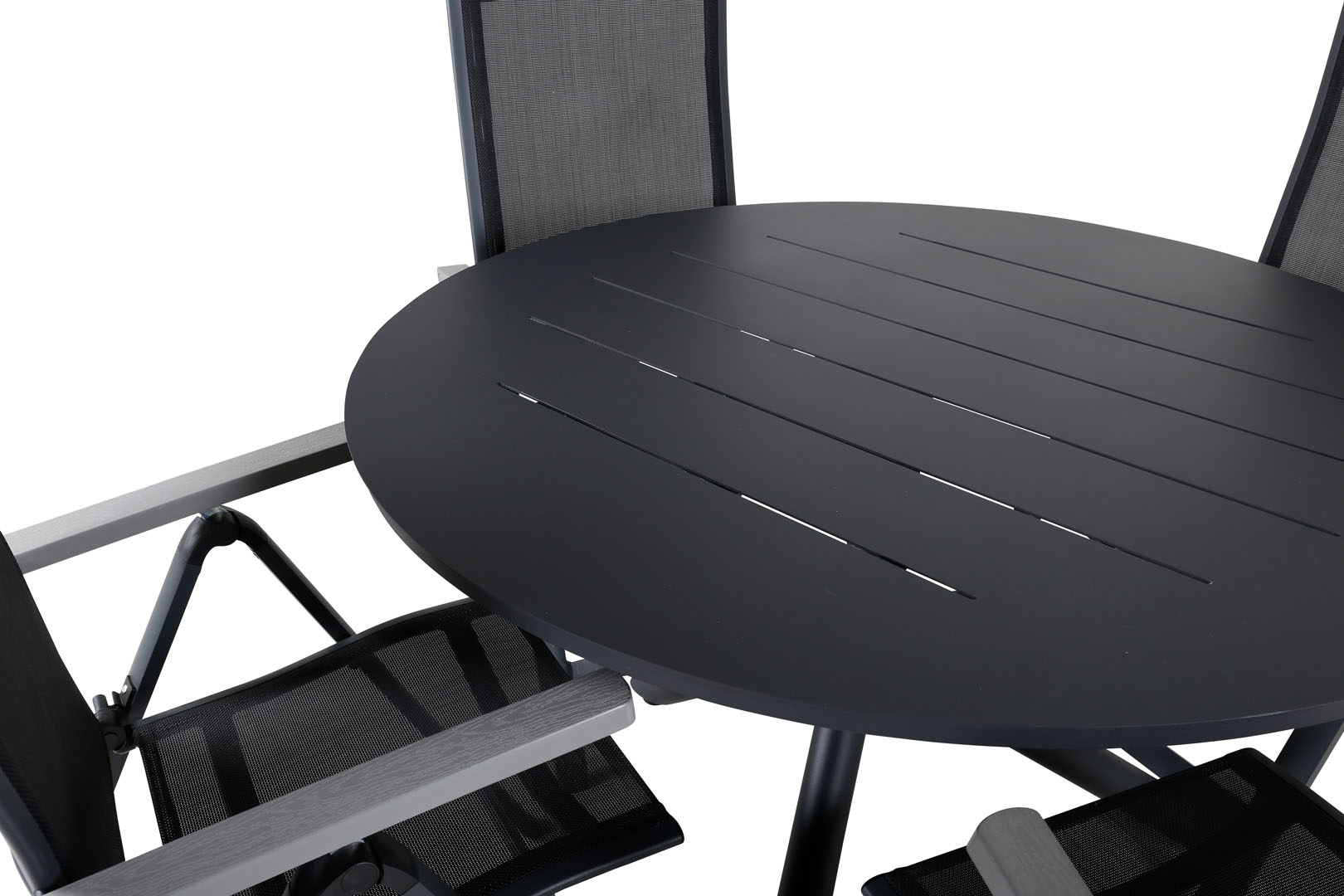 Alma tuinmeubelset tafel Ø120cm en 4 stoel L5pos Albany zwart.
