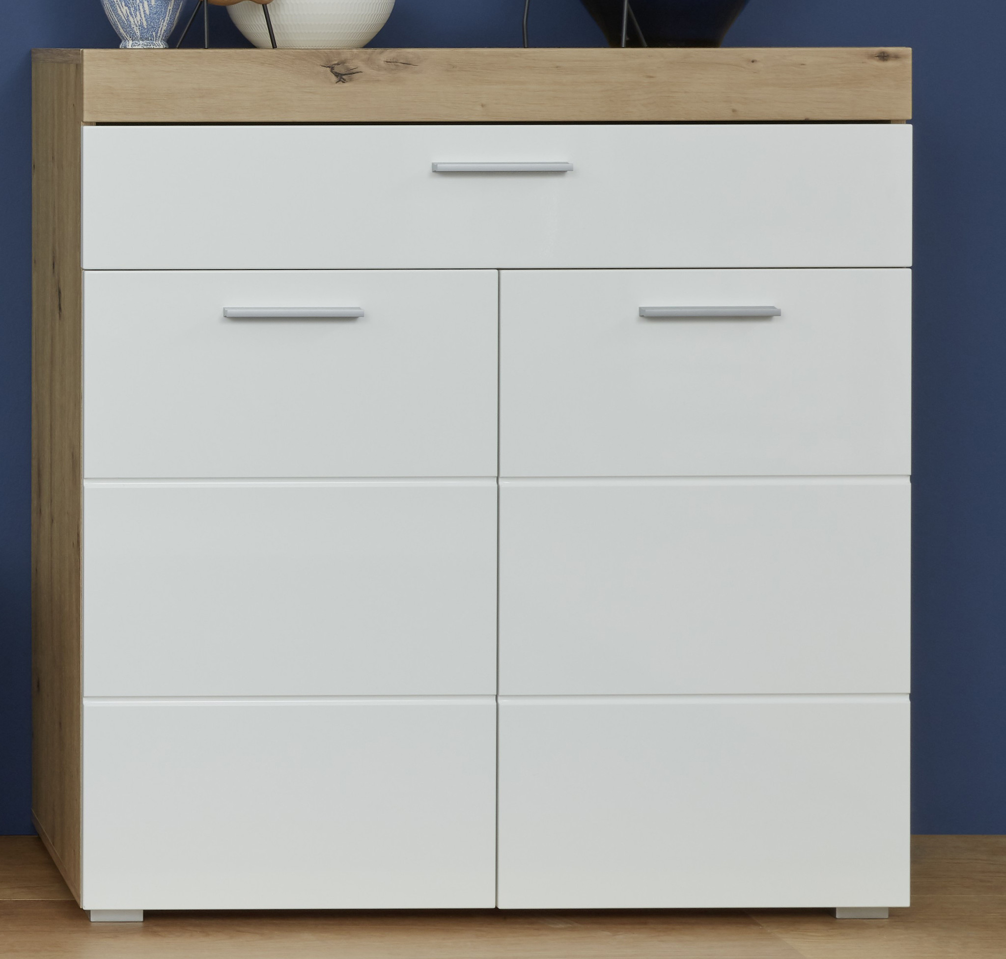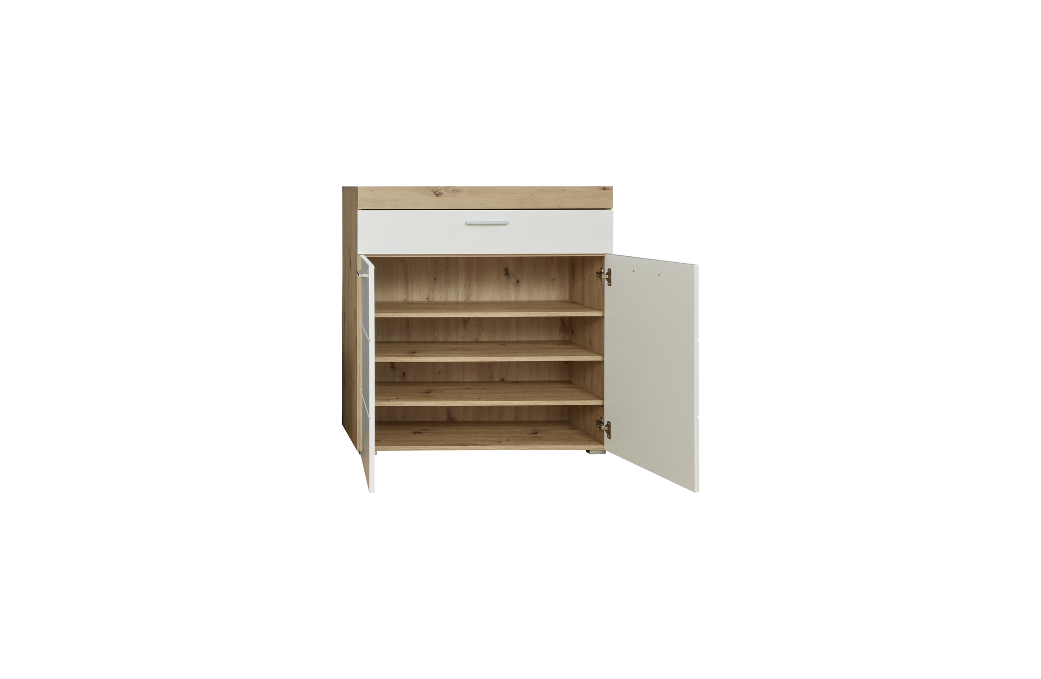 Amanda/MandoGD schoenenkast kommode 2 deuren, 1 lade eiken decor, wit hoogglans.