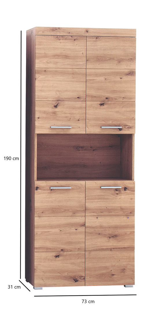 Amanda,MandoBad kolomkast 4 deuren, 1 open vak eiken decor. 4 legplanken. Je ontvangt meubels van een goede kwaliteit met een aangenaam comfort, gemaakt in een stijlvol en mooi design. Onze meubels zijn zeer aantrekkelijk geprijsd. Creëer uw eigen persoonlijke stijl met een nieuw meubel. Combineer met kleinmeubels of een paar mooie woonaccessoires. Hier verkrijg je de nieuwe woningtrends, zoals je ze in tijdschriften en magazines ziet. Bij ons vindt u unieke, praktische en comfortabele meubels met elk zijn eigen, mooi en apart design.