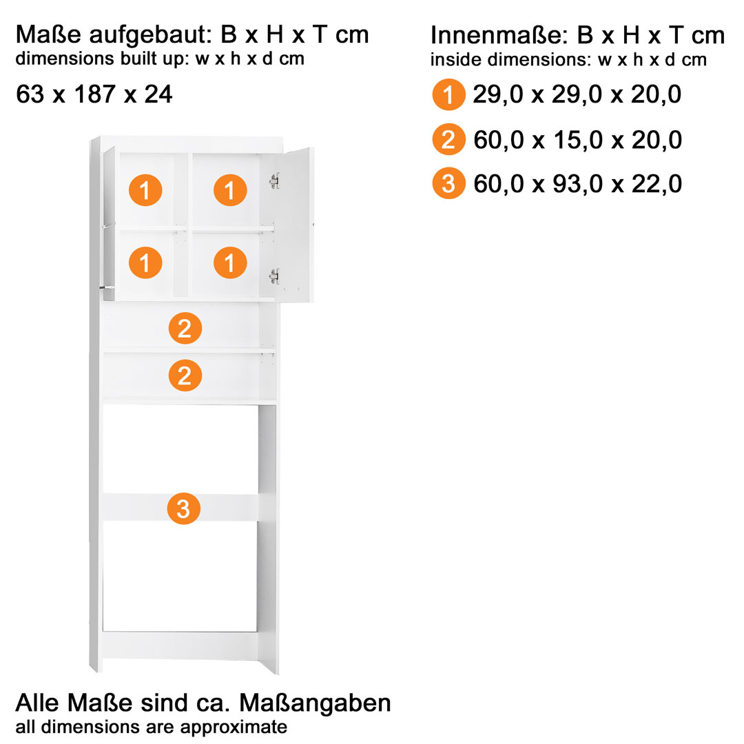 Productafmetingen: Breedte: 63 cm Diepte: 24 cm Hoogte: 187 cm