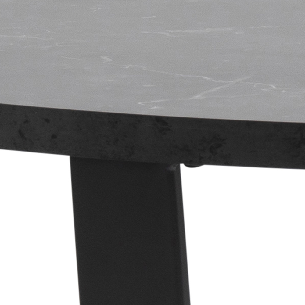 Materiaal: Tafelblad melamine marmer print, zwart, onderstel ruw gepoedercoat, mat zwart.