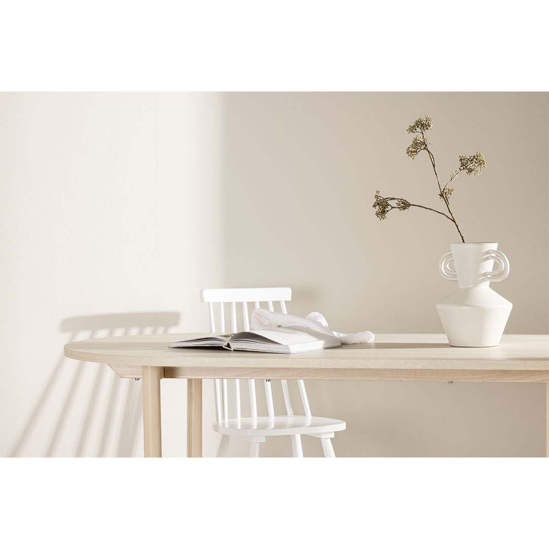 Andy eettafel ovaal 90x180cm white wash is een eettafel in de kleur Whitewash, die zowel stijl als functionaliteit in huis brengt. Andy eettafel ovaal 90x180cm white wash. Ontdek Andy - de tijdloze eettafel die de perfecte plek wordt voor gezellige maaltijden. Met zijn white wash kleur geeft Andy een aardse en neutrale sfeer aan je eetkamer of keuken. De stalen poten van de tafel en het tafelblad van MDF-materiaal combineren eenvoud met robuustheid, waardoor het een betrouwbaar meubelstuk is voor vele jaren. Met de royale afmetingen van 180x90 cm is er voldoende ruimte voor familie en vrienden om zich rond de tafel te verzamelen en geniet van lekker eten en gezellig gezelschap. Andy heeft een strak design dat perfect past bij verschillende interieurstijlen en zorgt voor een rustige en ontspannen sfeer in de kamer. Of je hem nu gebruikt voor dagelijkse maaltijden of feestelijke gelegenheden, Andy zal een tijdloze en stijlvolle toevoeging zijn aan je huis. Geef uw interieur een vleugje eenvoudige elegantie met de eettafel Andy. Dit product is gemaakt met oog voor detail, wat zowel esthetische aantrekkingskracht als hoge duurzaamheid garandeert. Het is ontworpen met zowel functionaliteit als stijl in gedachten, waardoor het de perfecte keuze is voor elke kamer in uw huis. De gebruikte materialen zijn van hoge kwaliteit, waardoor het product een lange levensduur heeft en bestand is tegen dagelijks gebruik. Of het nu voor opslag is of als decoratieve toevoeging, dit product zal uw interieur naar een hoger niveau tillen en extra comfort en elegantie in uw huis brengen.