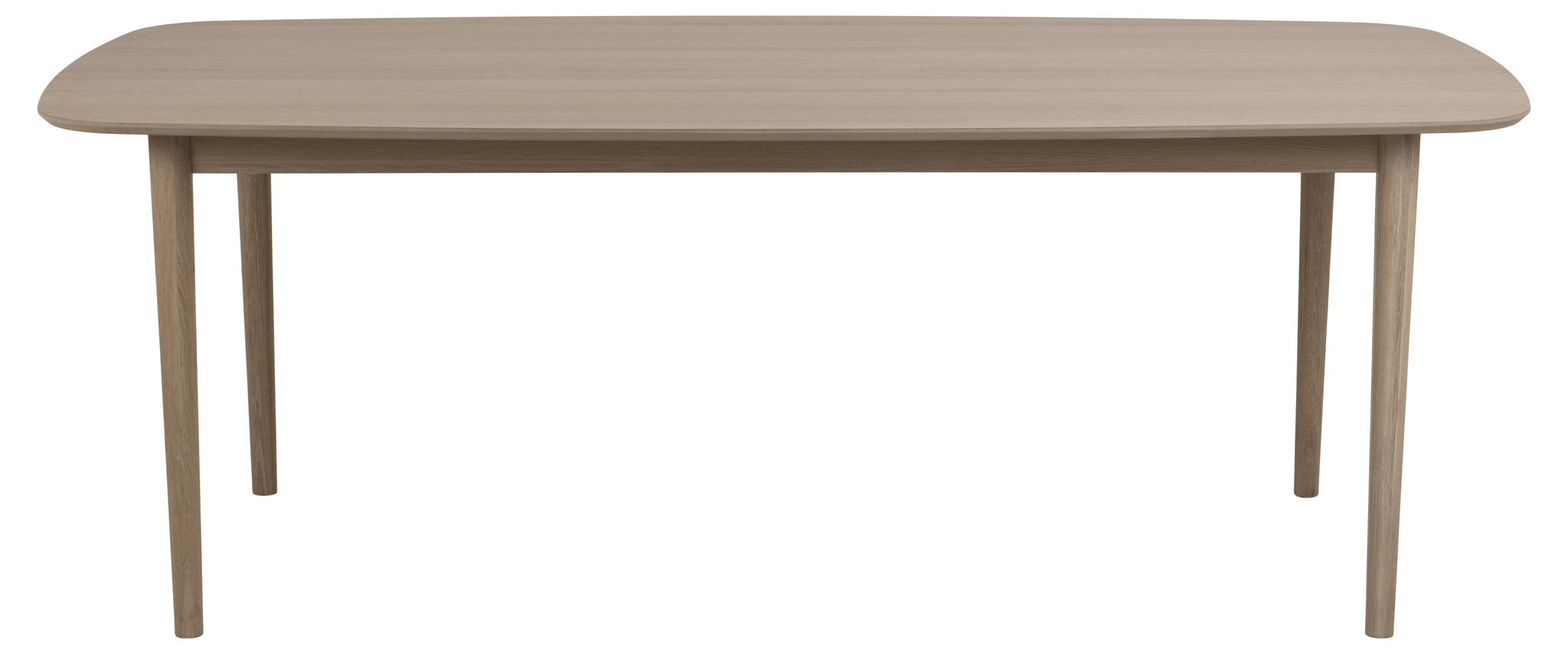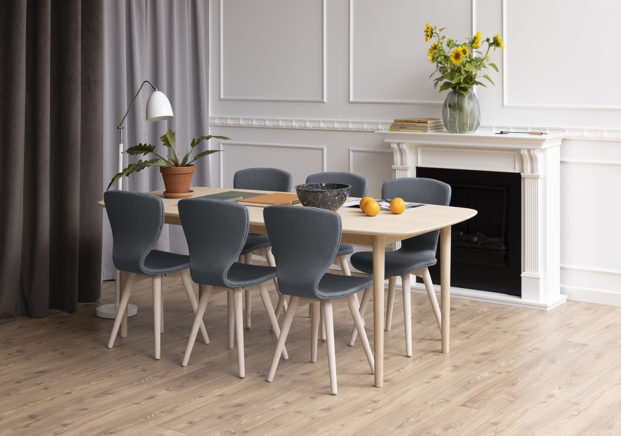 Assor eetkamertafel ovaal, voorbereid voor extra bladen, wit geolied eiken decor.