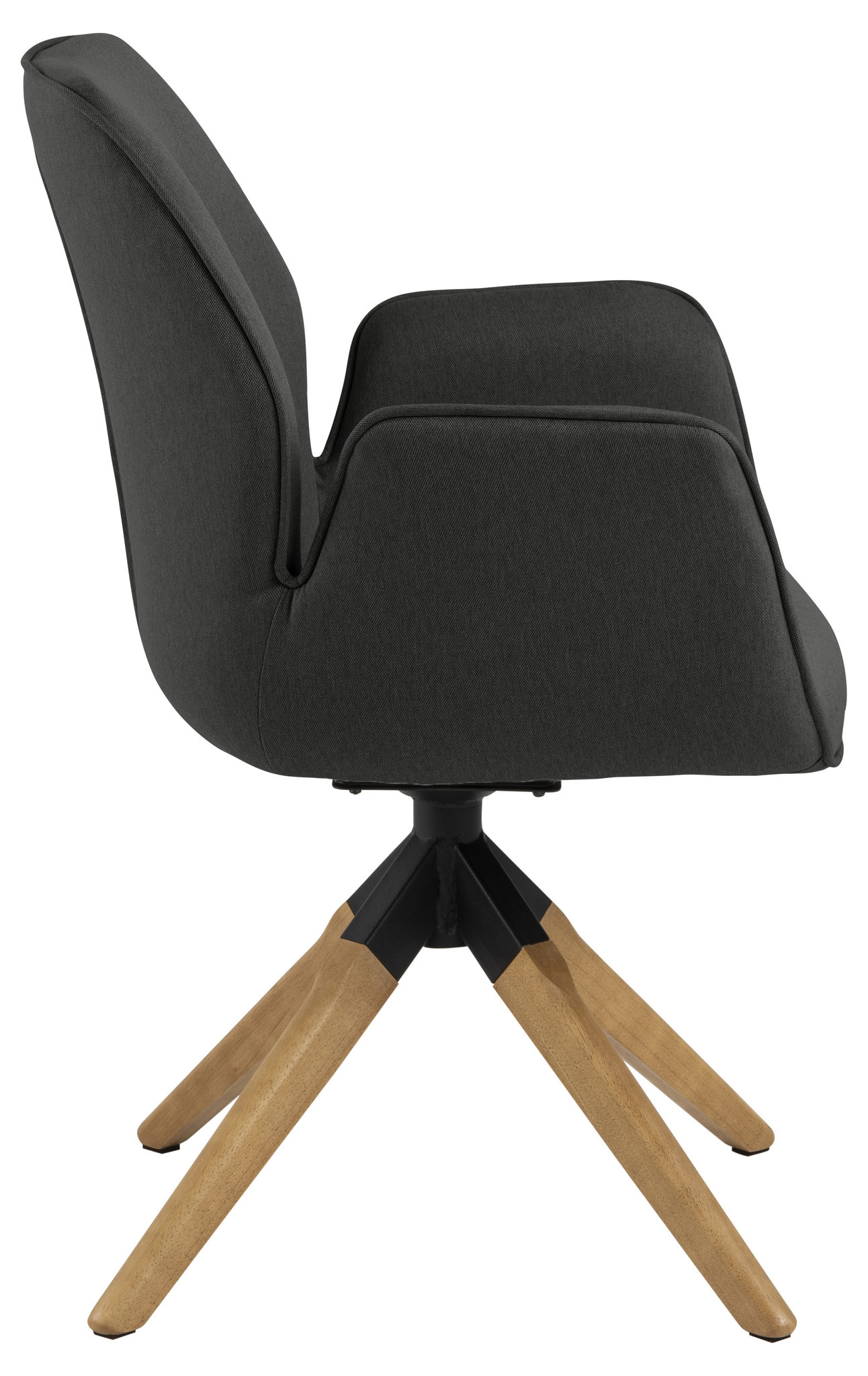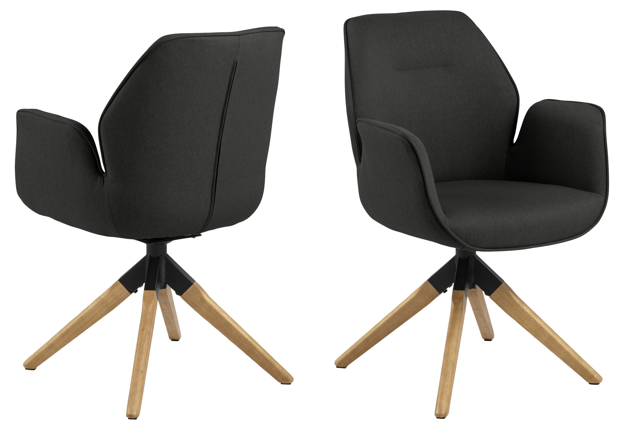 Aura eetkamerstoel eiken poten, met armsteunen en rugleuning donkergrijs.