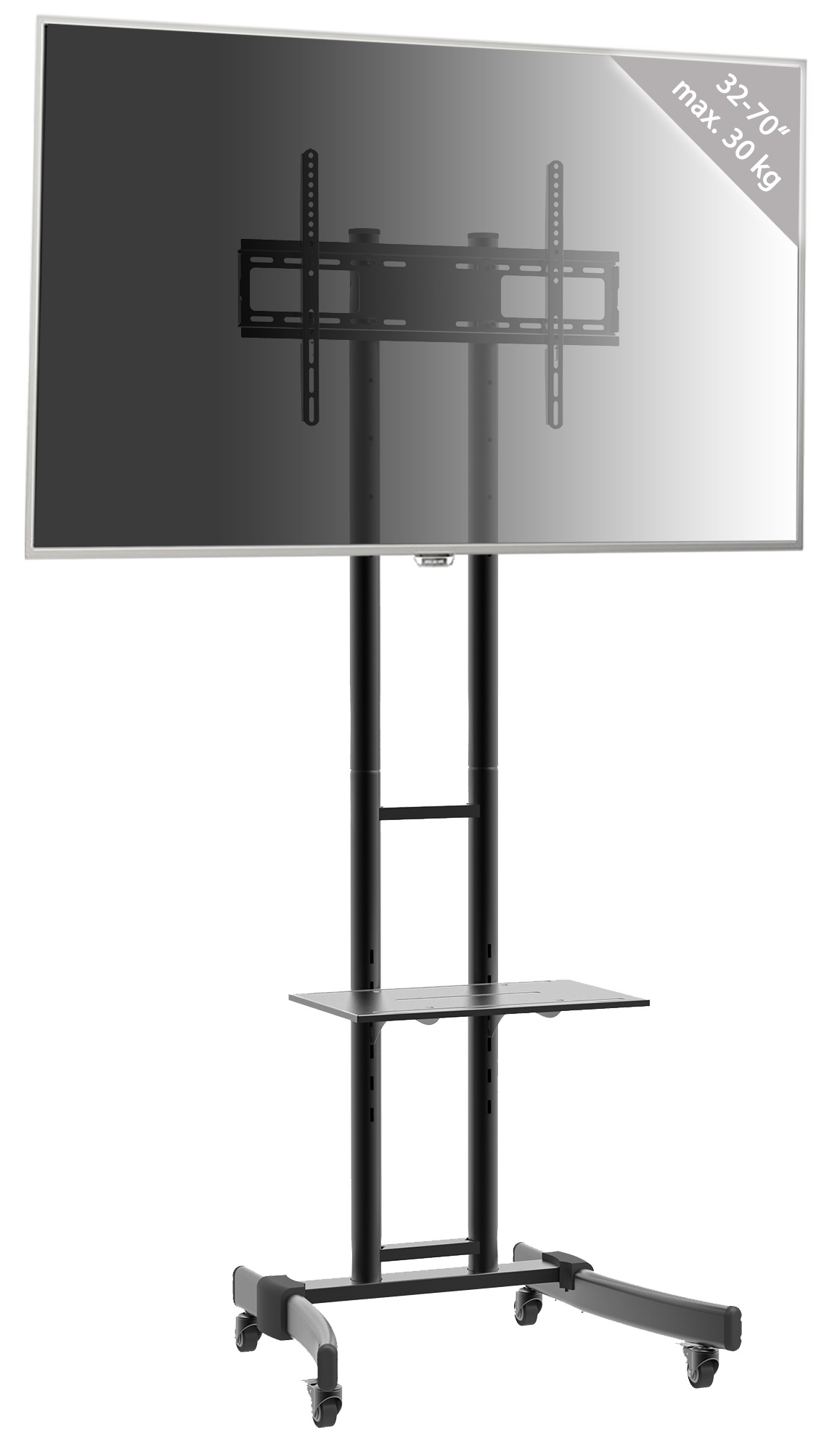 ebuy24 B-MS 190 TV-meubel in hoogte verstelbaar met 1 plank en wielen, Zwart.