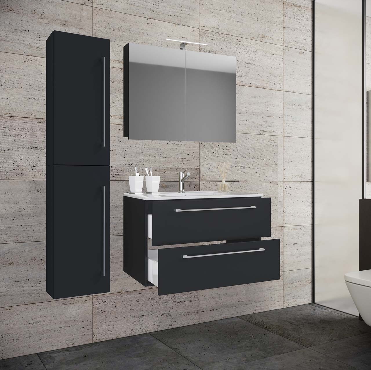 Badinos60SS badkamer zwart. 3 delen. . Incl. wasbak. Zonder kraan. Wastafel: ca H 52 x B 61 x T 46 cm . Zonder licht. Spiegelkast: H 59 x B 60 x T 12 cm . Kolomkast: H 151 x B 33 x T 22 cm. Je ontvangt meubels van een goede kwaliteit met een aangenaam comfort, gemaakt in een stijlvol en mooi design. Onze meubels zijn zeer aantrekkelijk geprijsd. Creëer uw eigen persoonlijke stijl met een nieuw meubel. Combineer met kleinmeubels of een paar mooie woonaccessoires. Hier verkrijg je de nieuwe woningtrends, zoals je ze in tijdschriften en magazines ziet. Bij ons vindt u unieke, praktische en comfortabele meubels met elk zijn eigen, mooi en apart design.