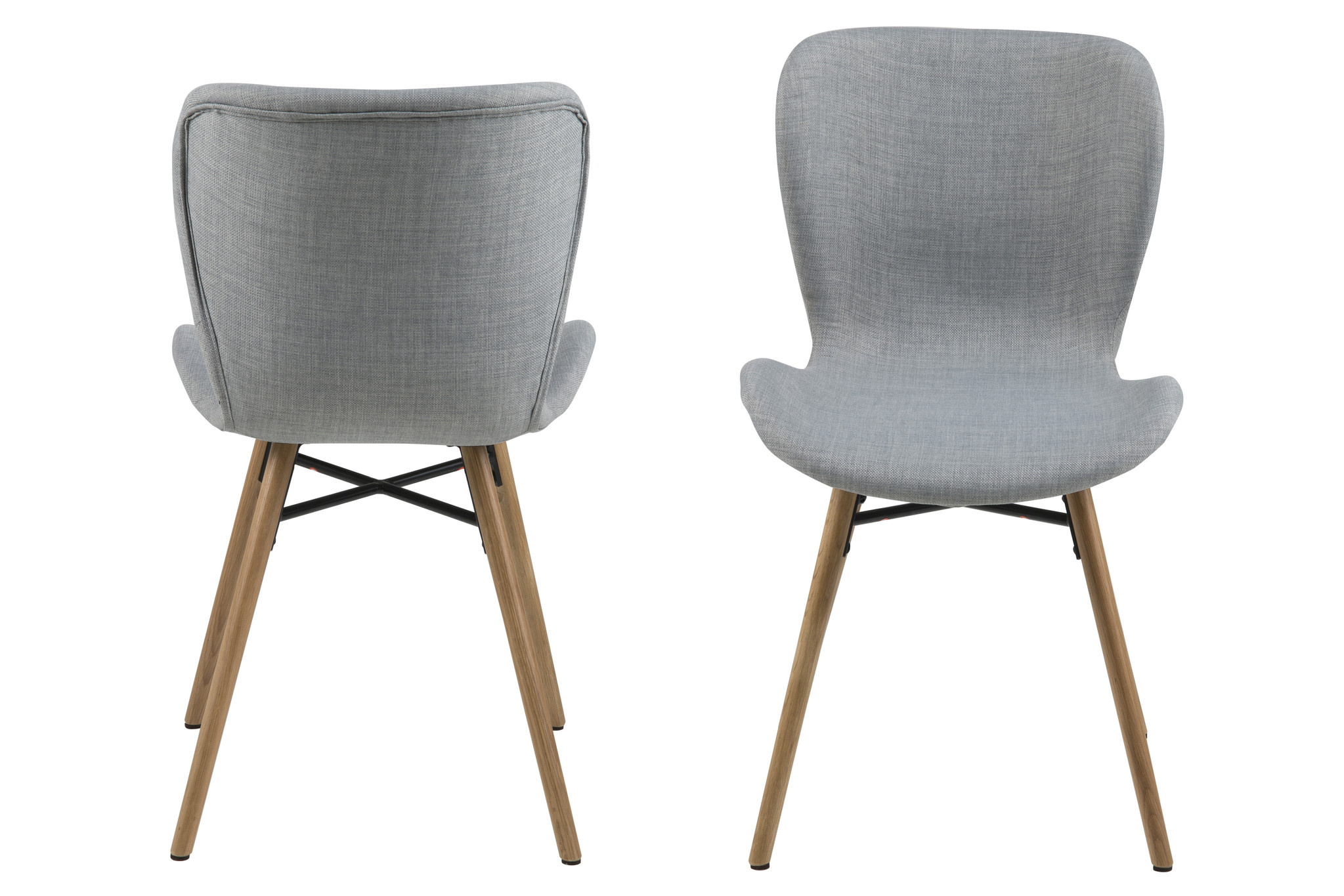 Bali eetkamerstoel in lichtgrijze stof en massief eiken poten.