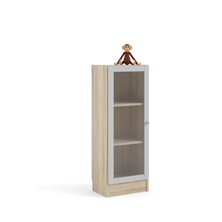 Base wandkast 1 glazen deur eiken structuur, wit.