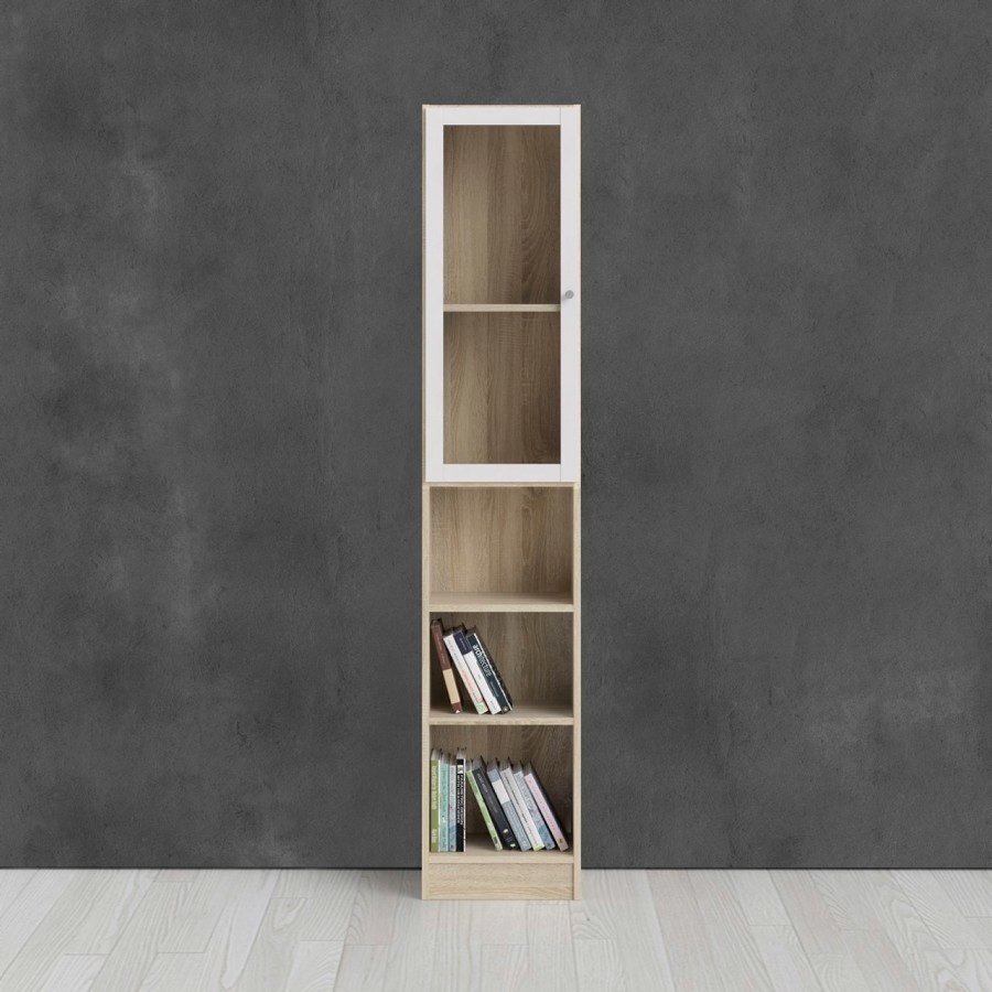Base wandkast 1 glazen deur en 2 planken eiken structuur decor, wit.