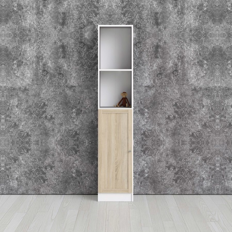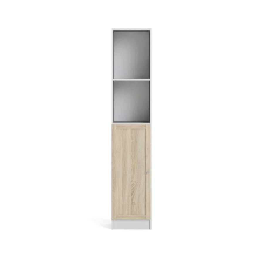 Base wandkast 1 plank en 1 deur wit, eiken structuur decor.