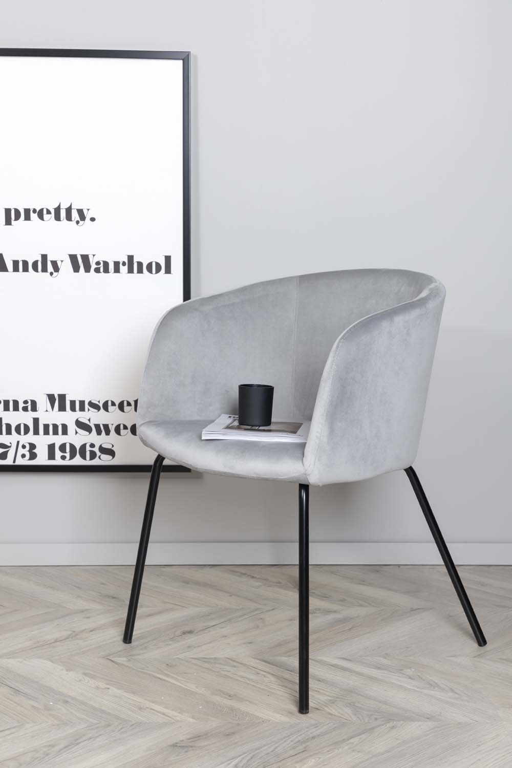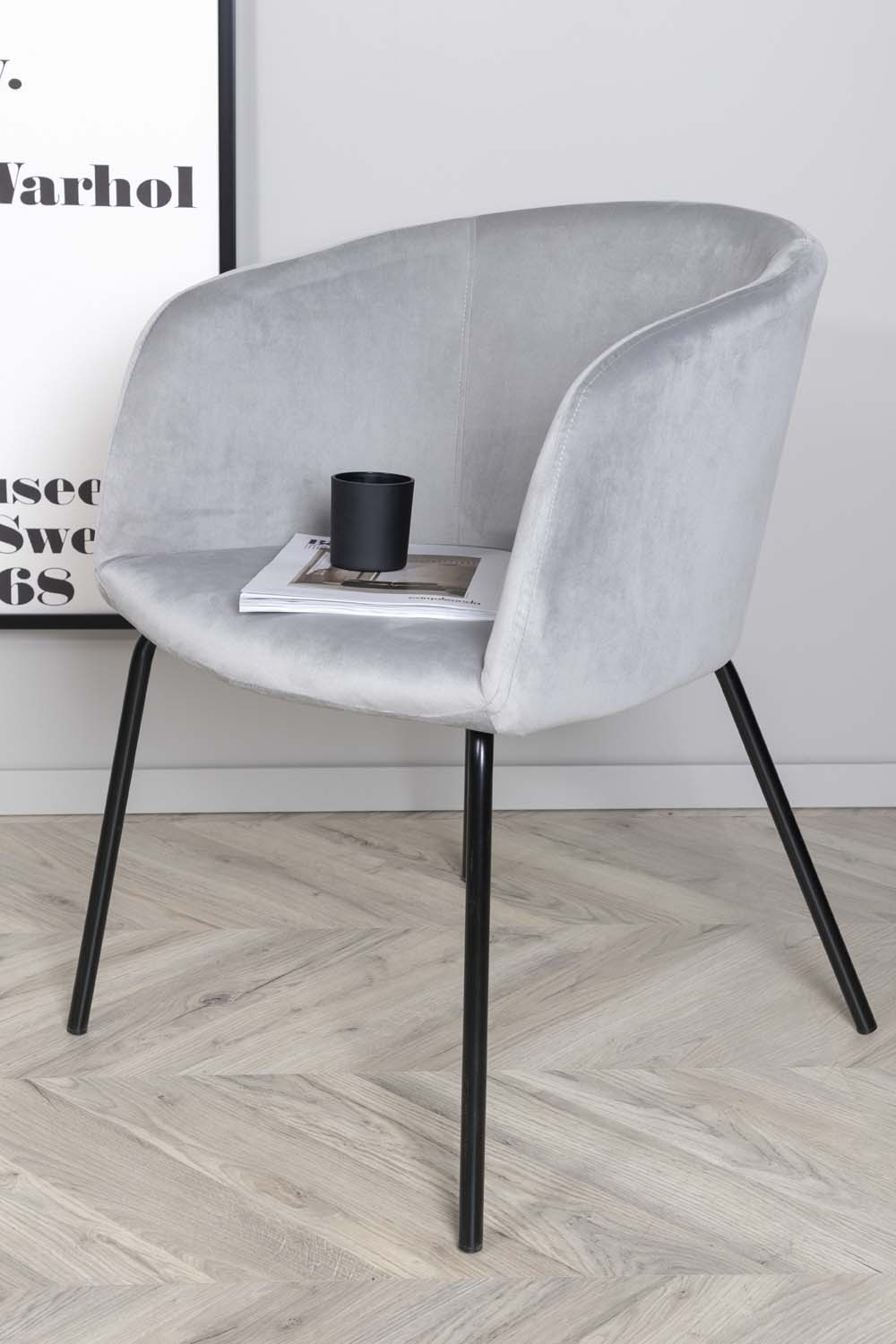 ebuy24 Berit eetkamerstoel met armleuningen velours grijs.