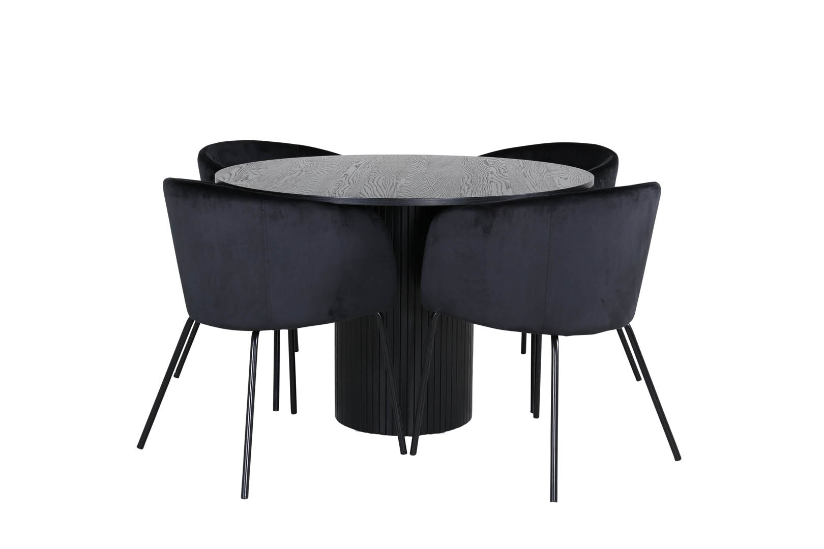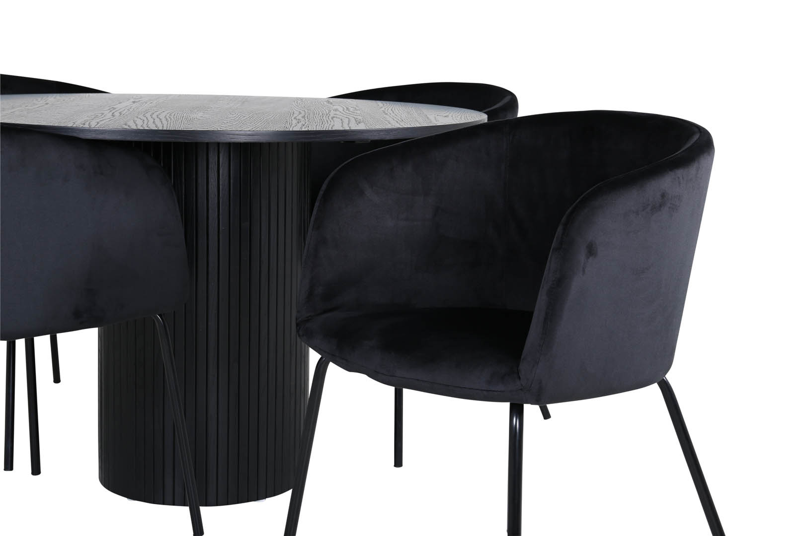 ebuy24 BiancaROBL eethoek eetkamertafel zwart en 4 Berit eetkamerstal velours zwart.
