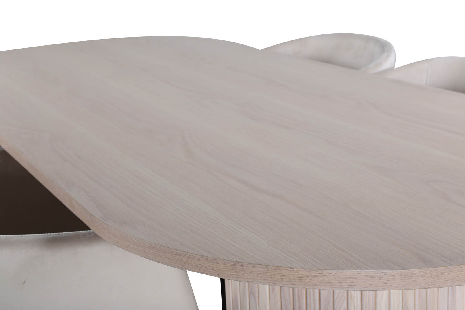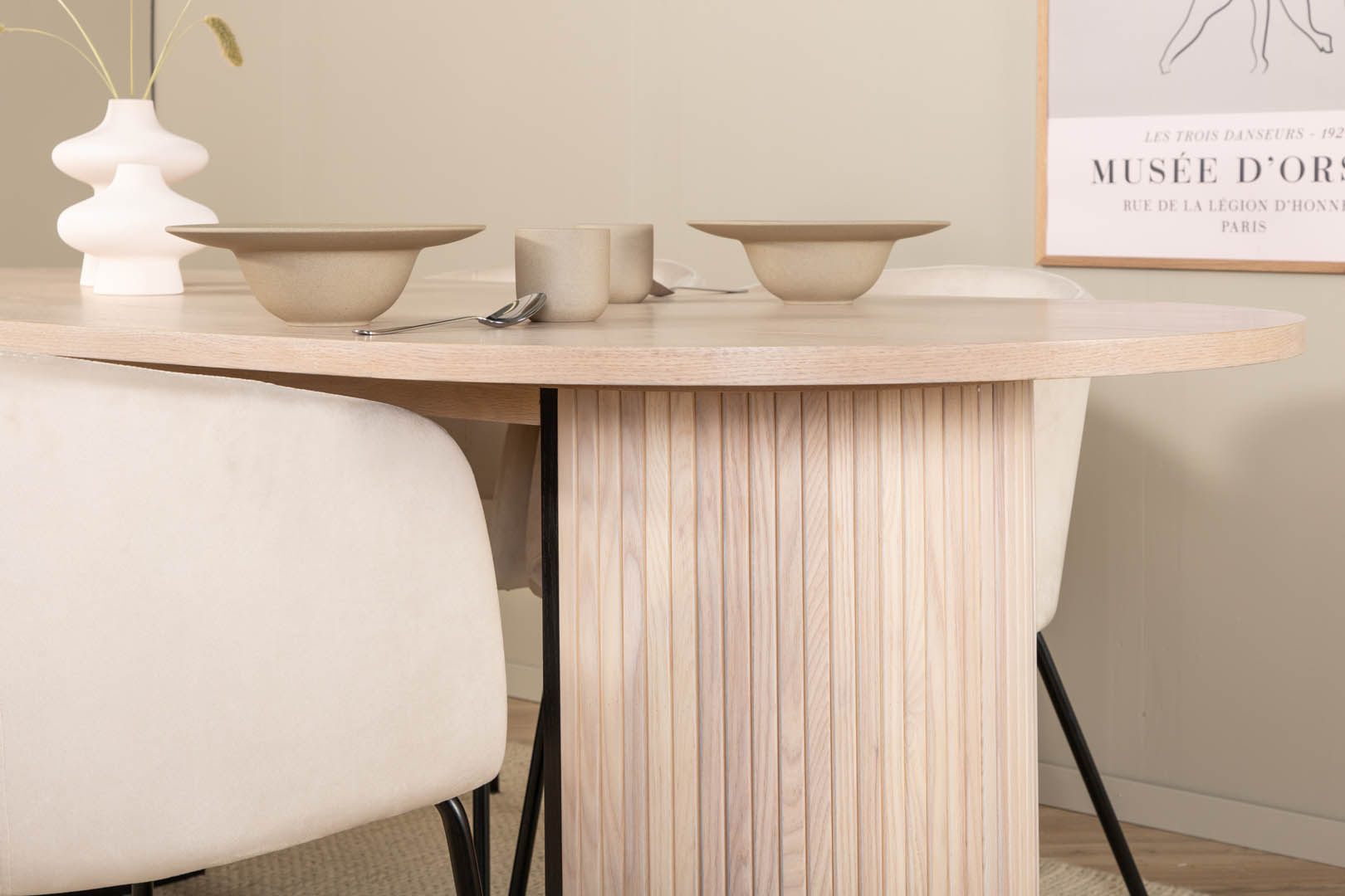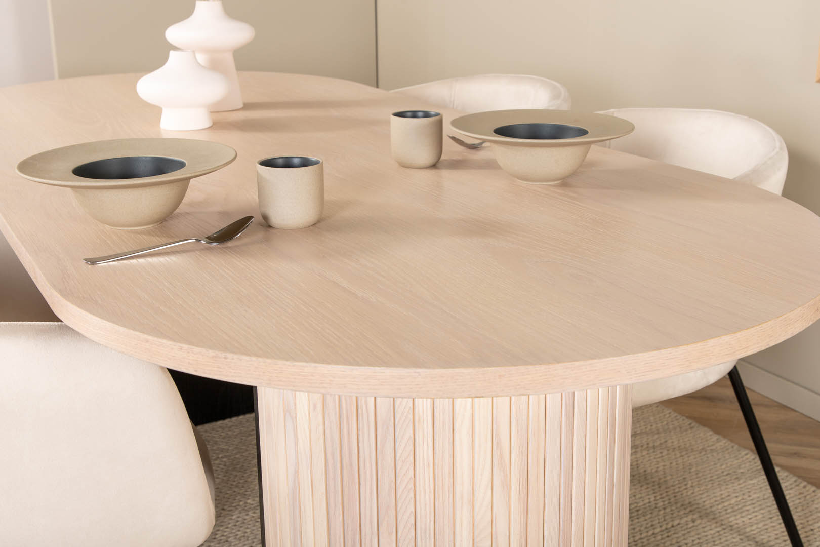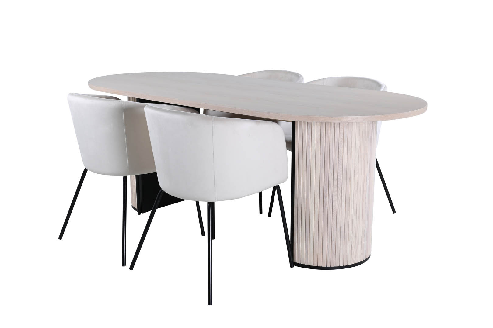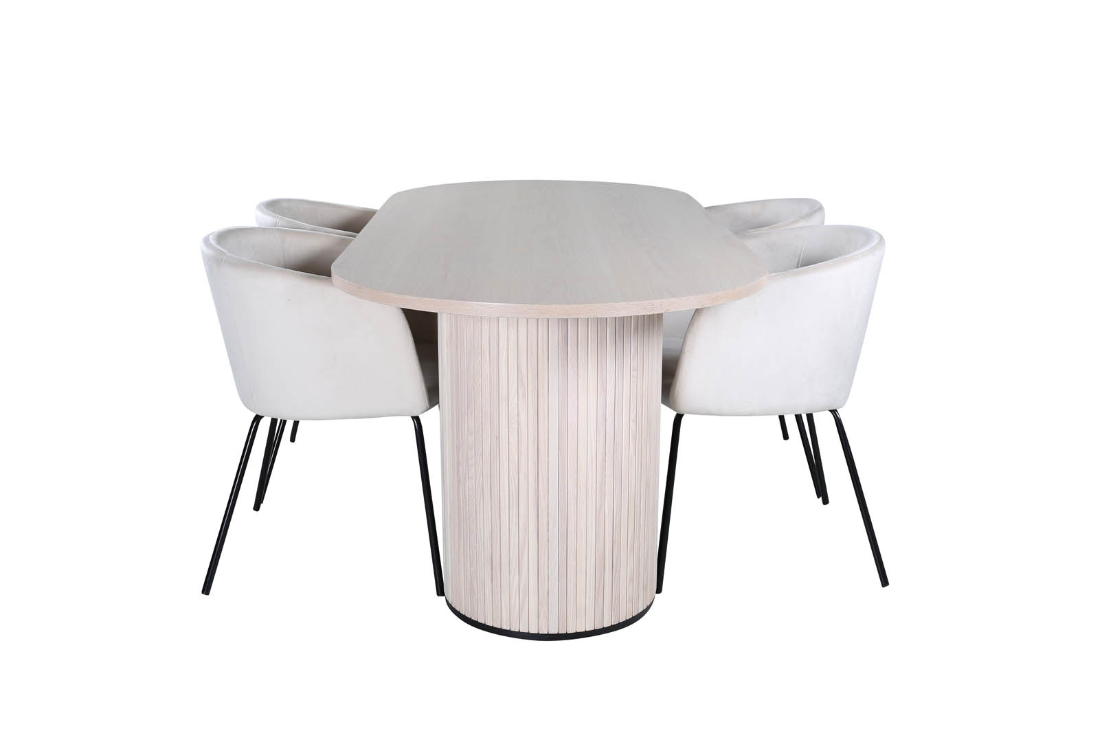 ebuy24 BiancaWW eethoek eetkamertafel eik fineer wit washed en 4 Berit eetkamerstal velours beige.
