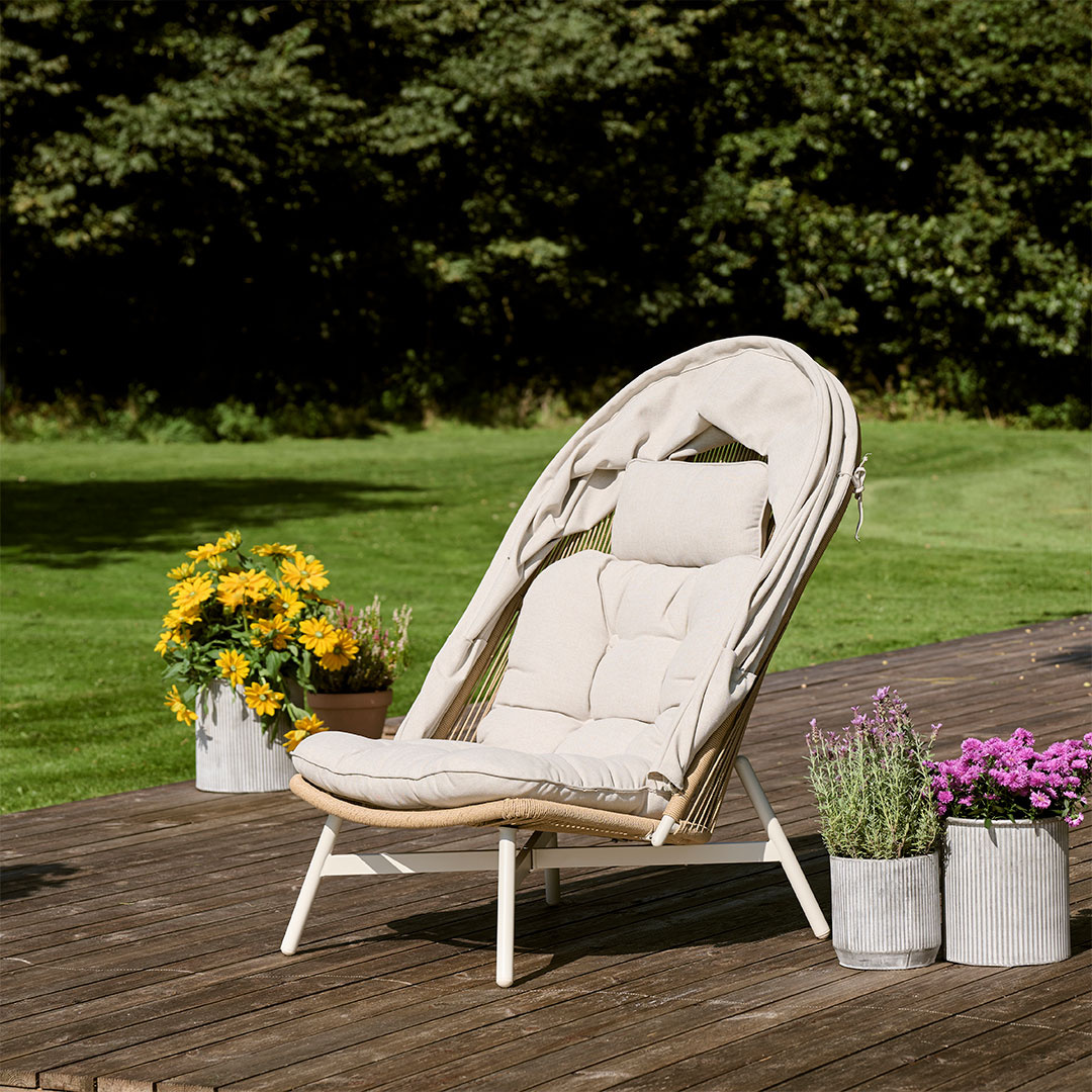 ebuy24 Bille lounge stoel polyrattan met kussen beige, natuur, grijs.