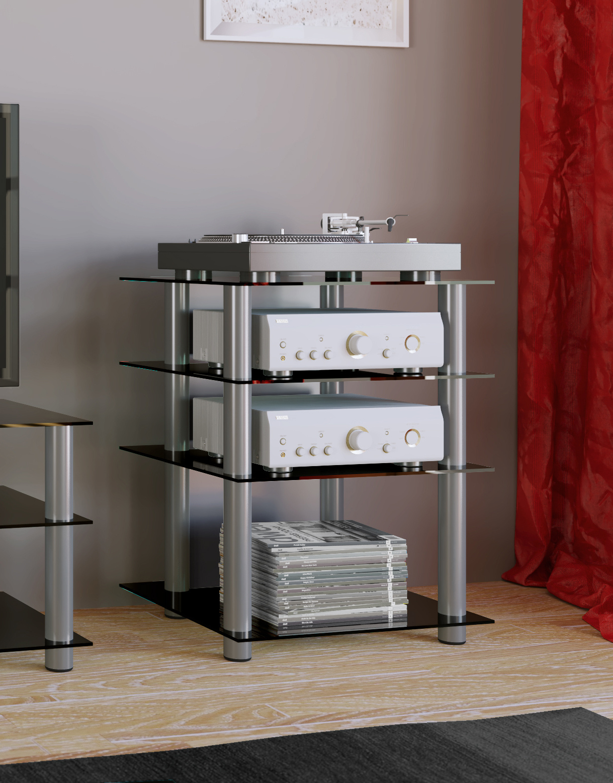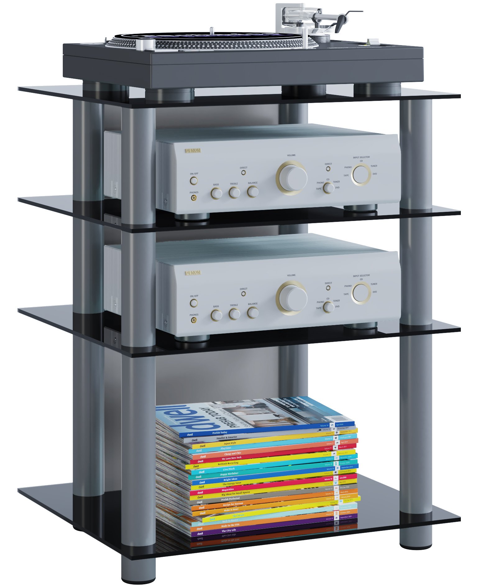 ebuy24 Bilus TV-meubels , hifi, Zilverkleurig, zwart glas.