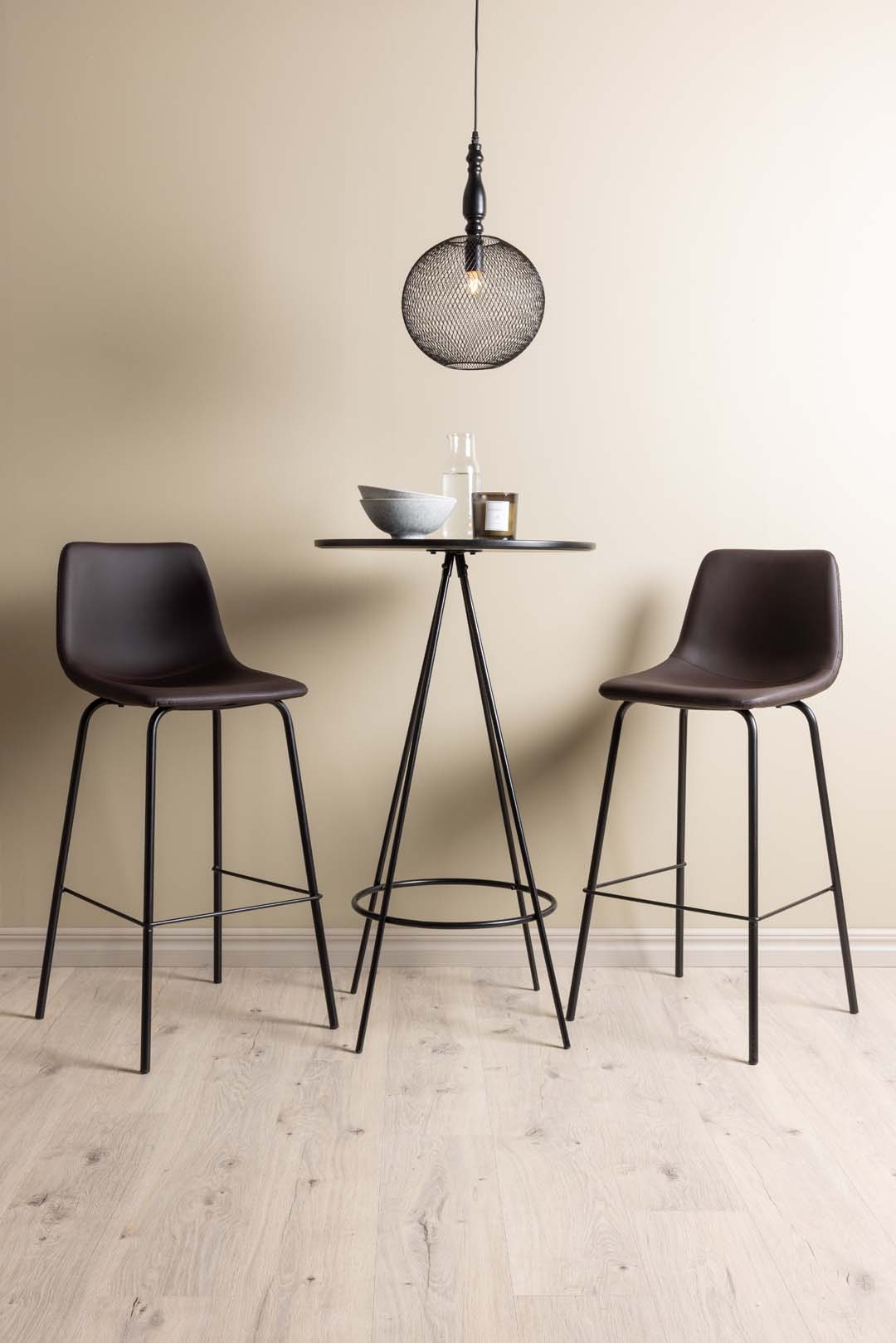 ebuy24 Bistro barmeubelset bartafel zwart en 2 Alexi barstoelen bruin.