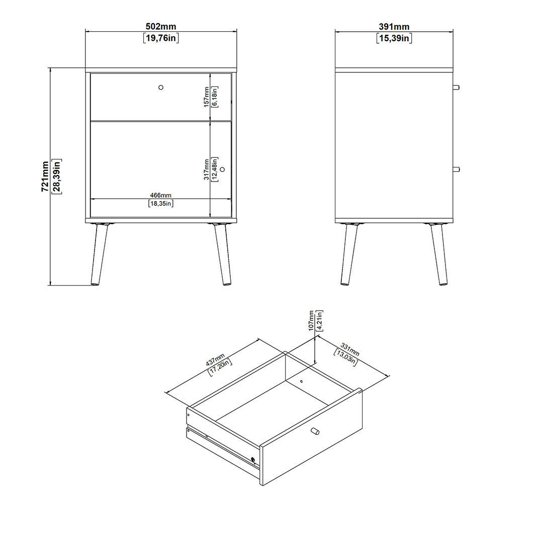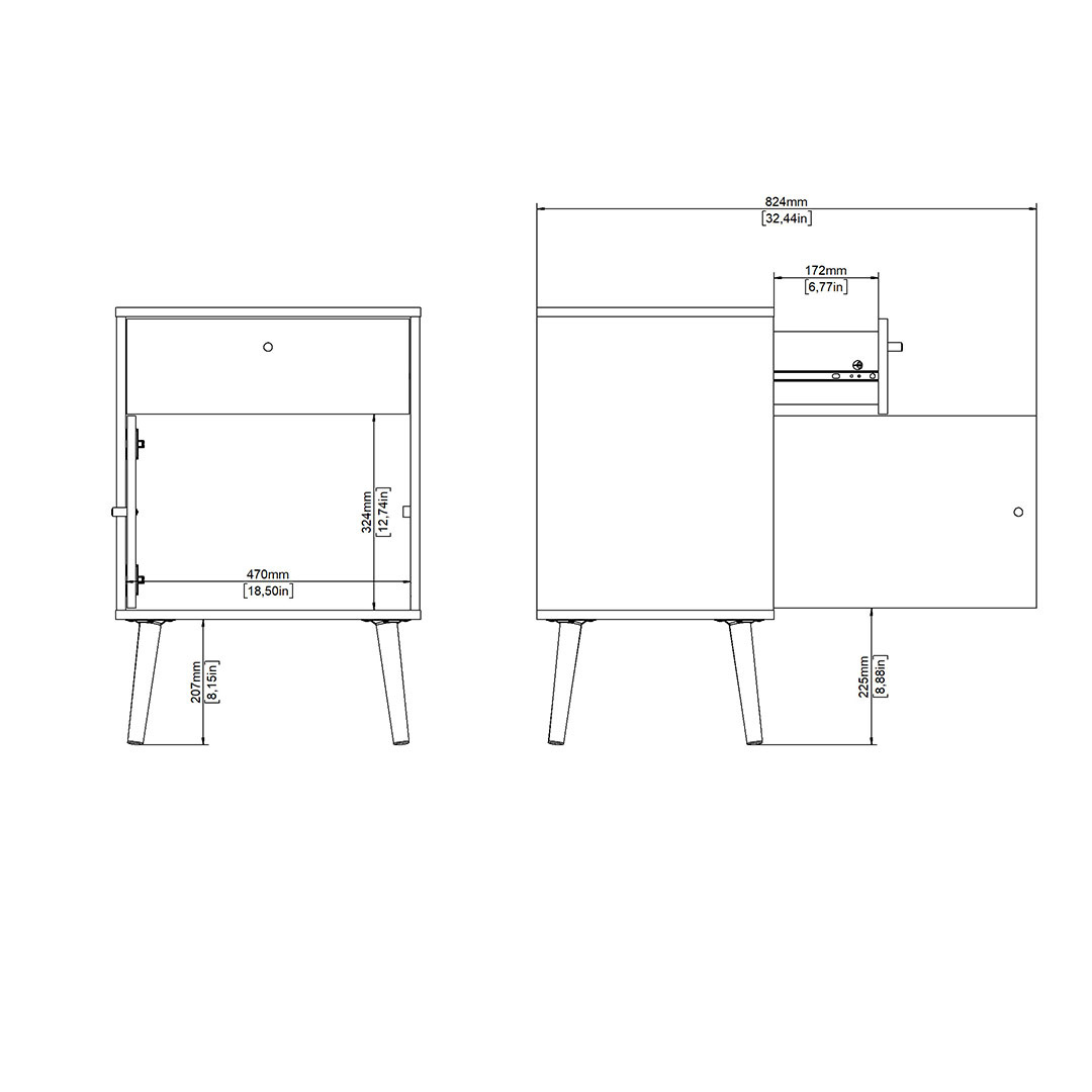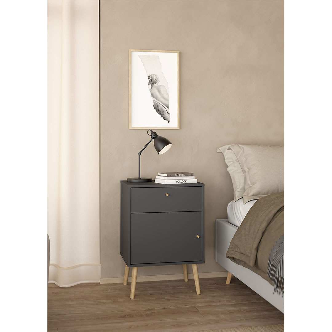 ebuy24 Bodo nachtkastje 1 deur, 1 lade matgrijs.