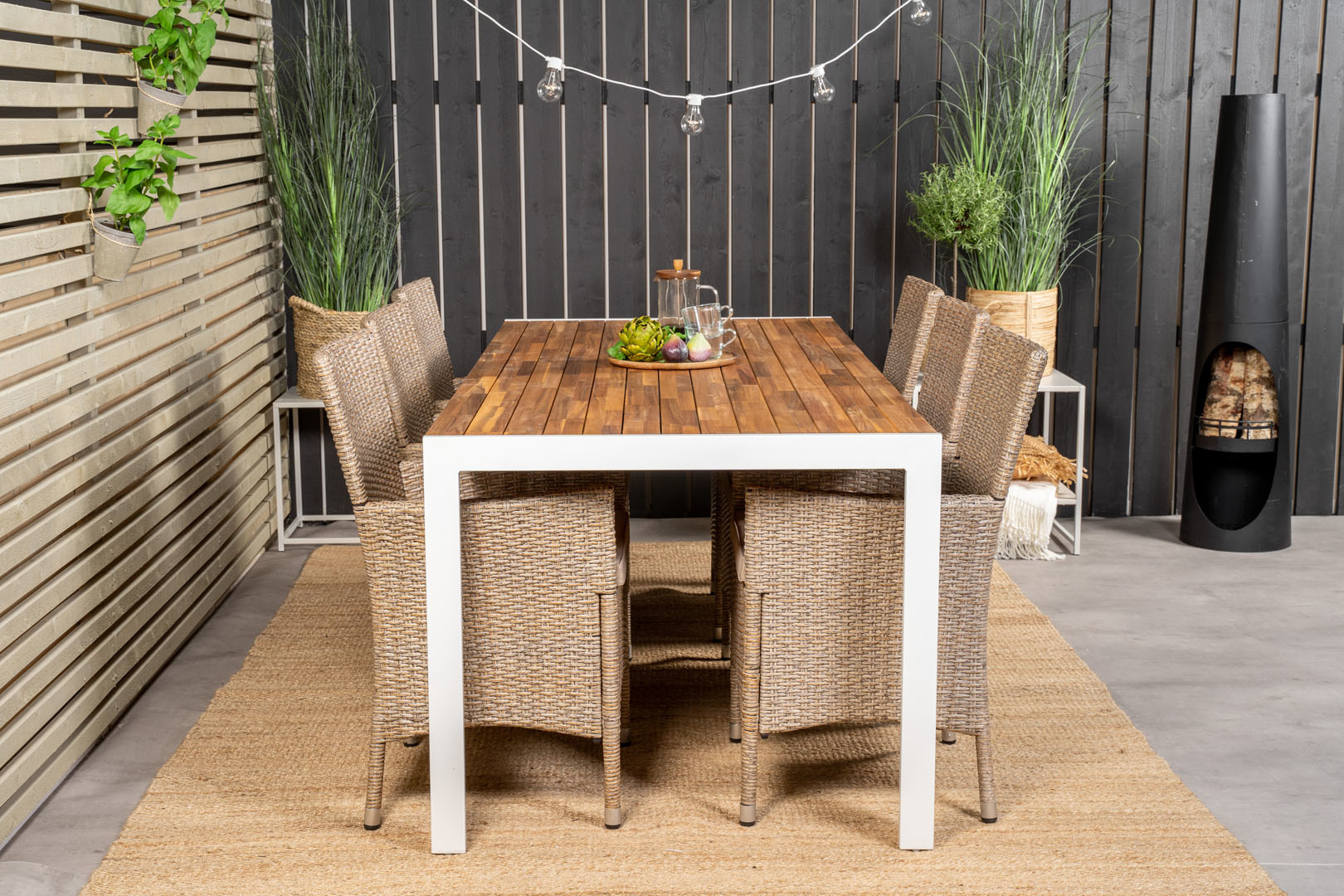 Bois eettafel tuin natuur, wit.Afstand tussen tafelpoten - Lange zijde: 190 cm. Afstand tussen tafelpoten - korte zijde: 77 cm.