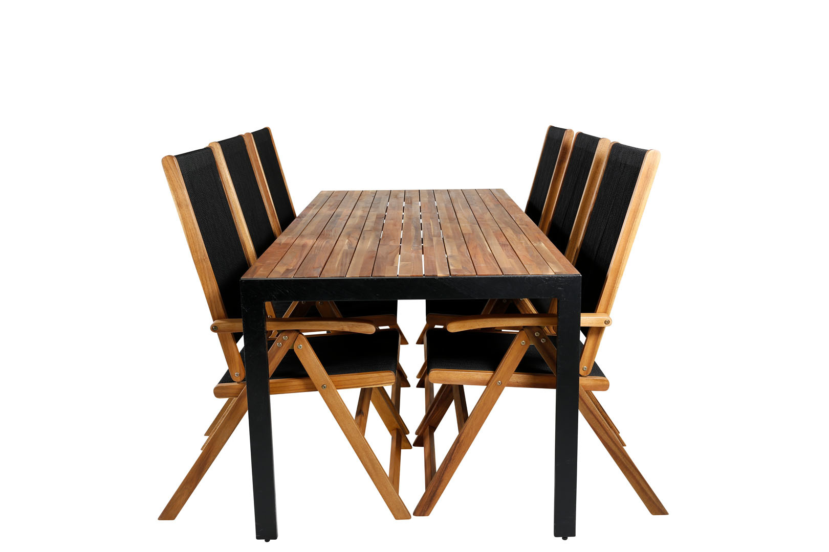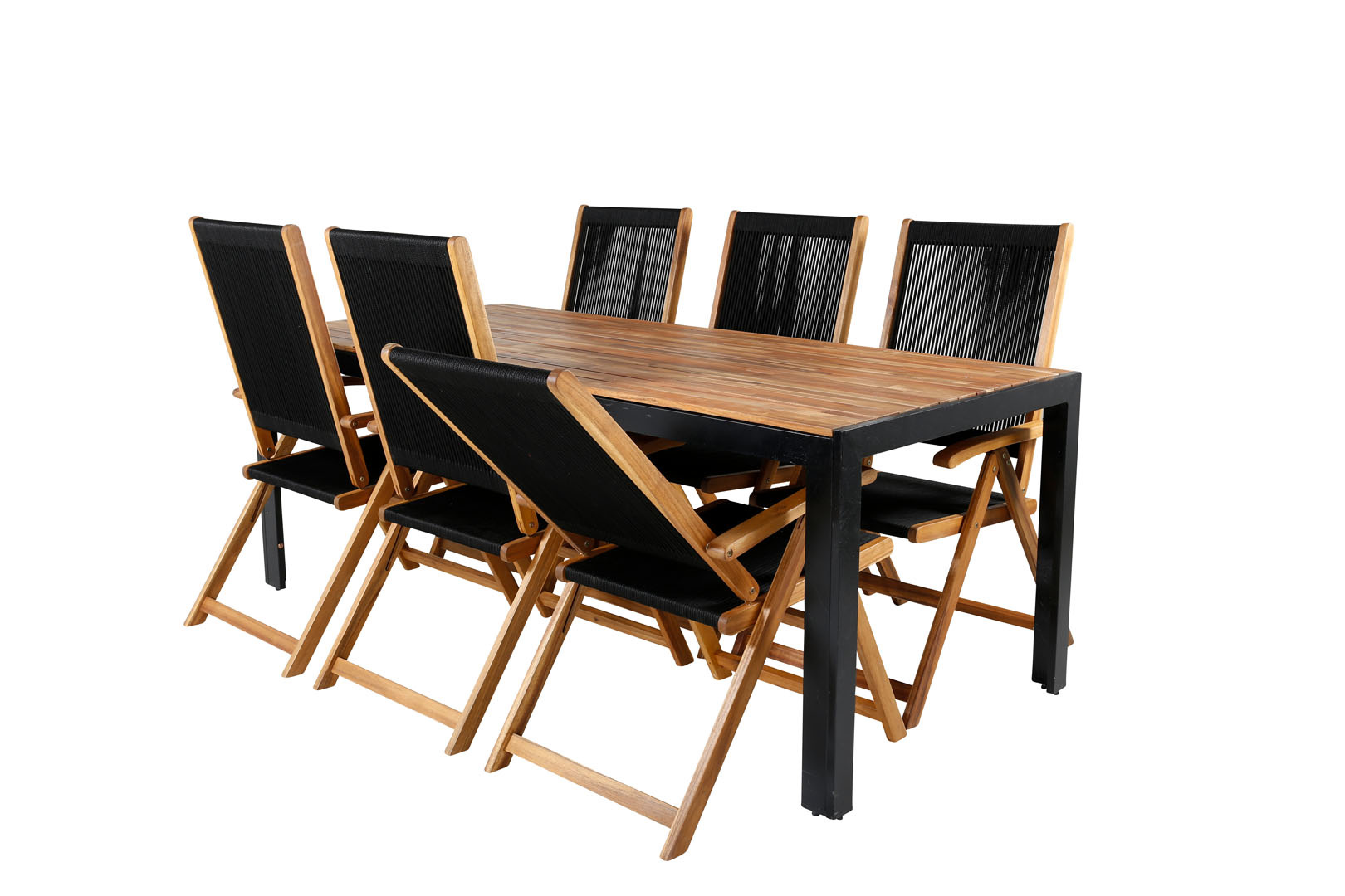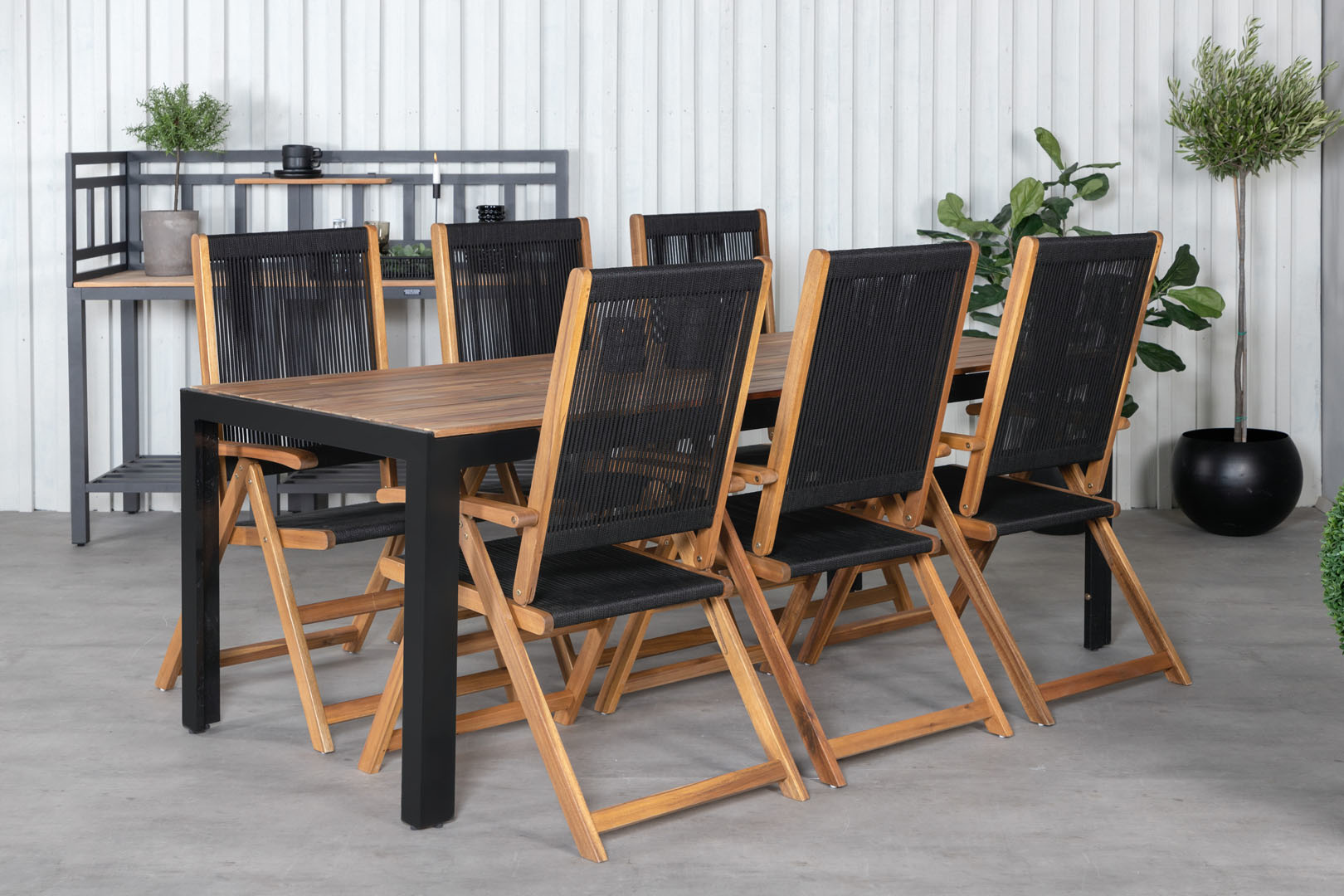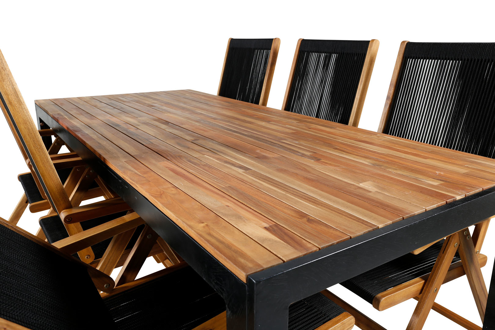 Bois tuinmeubelset tafel 90x205cm en 6 stoel Little John zwart, naturel.