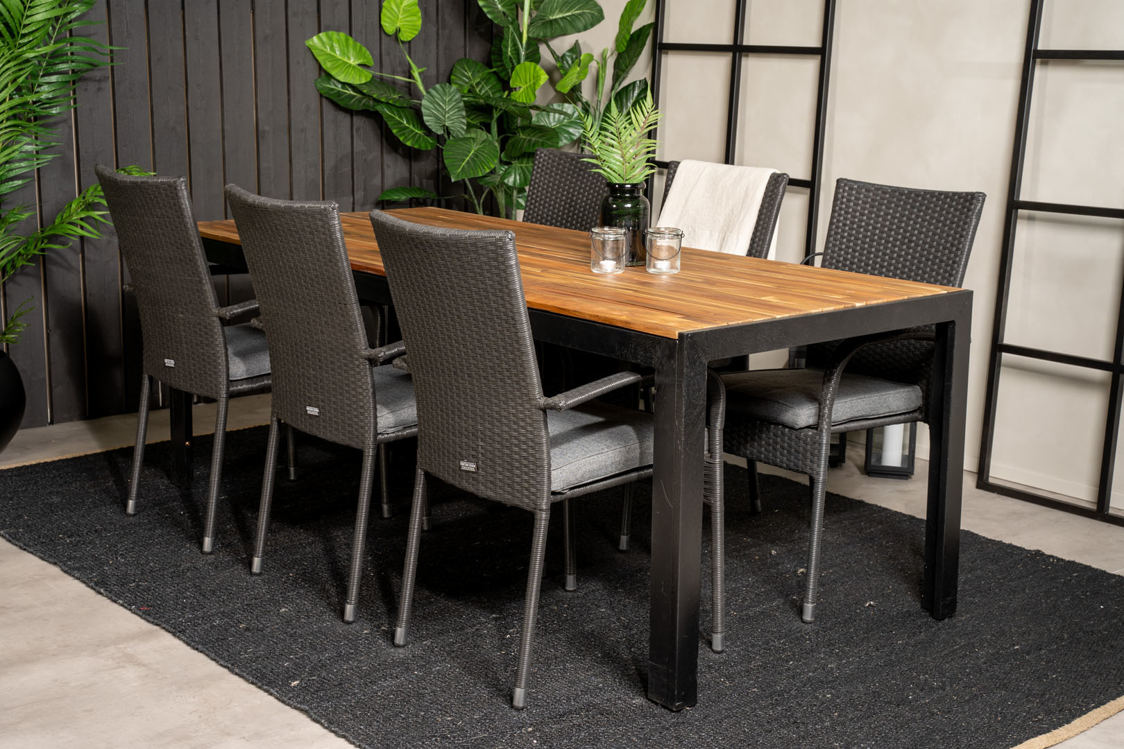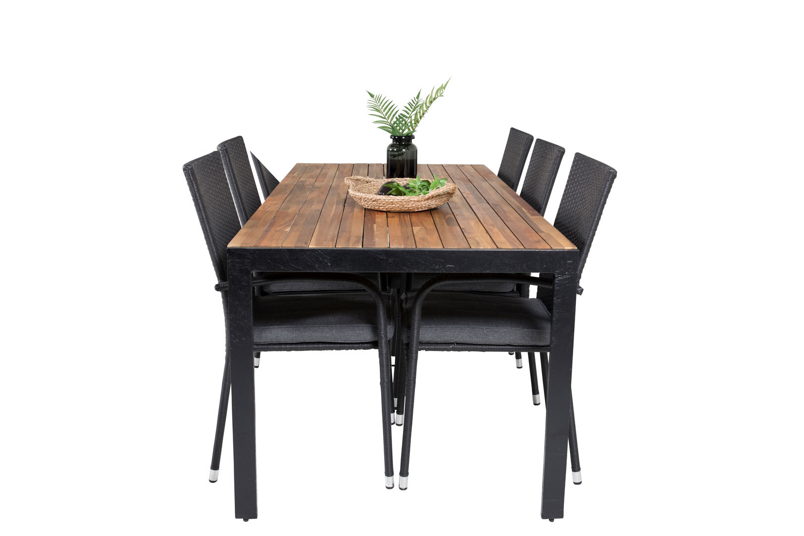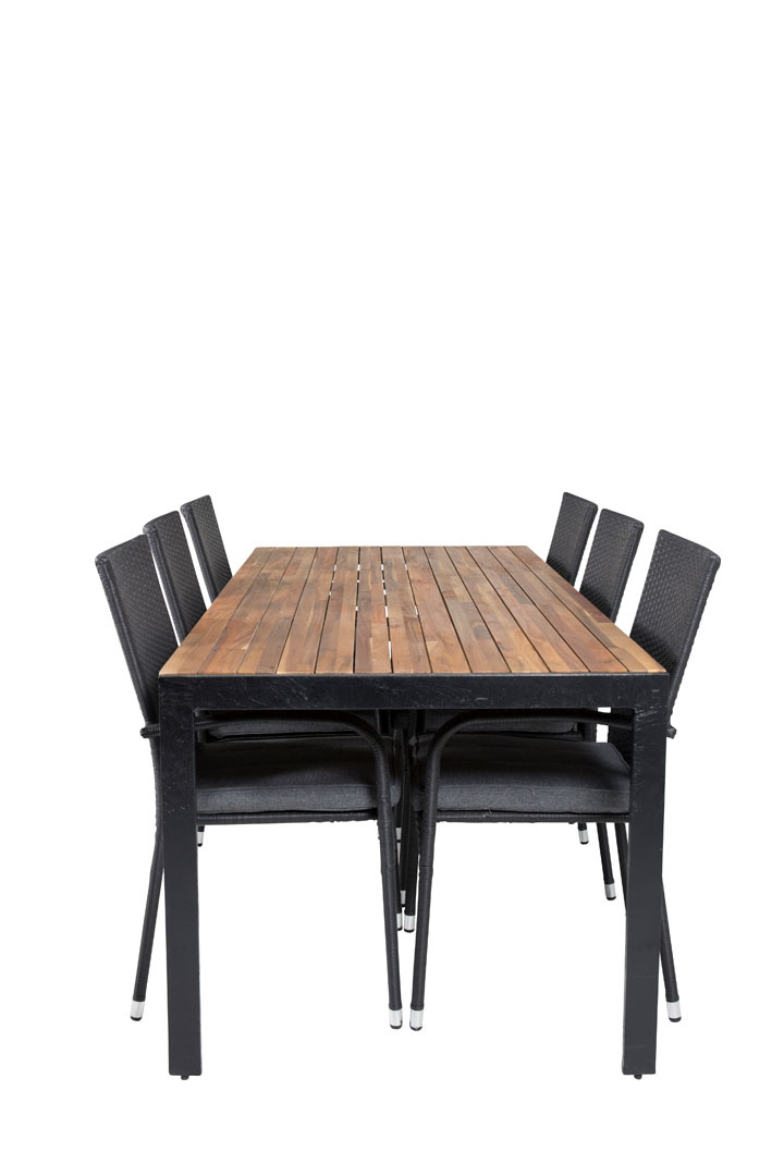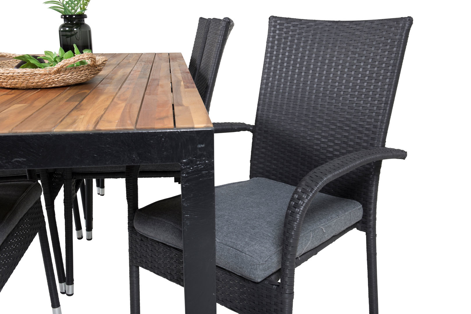 Bois tuinmeubelset tafel 90x205cm en 6 stoel Anna zwart, naturel.
