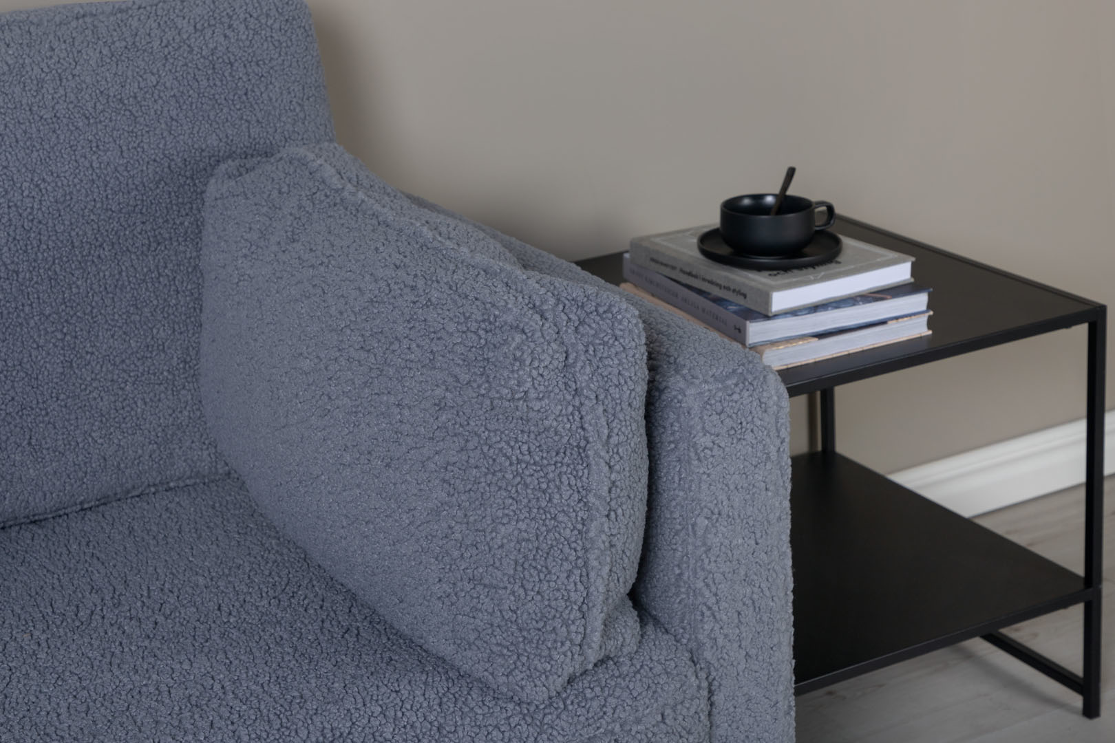 Boom fauteuil teddy stof donkergrijs.