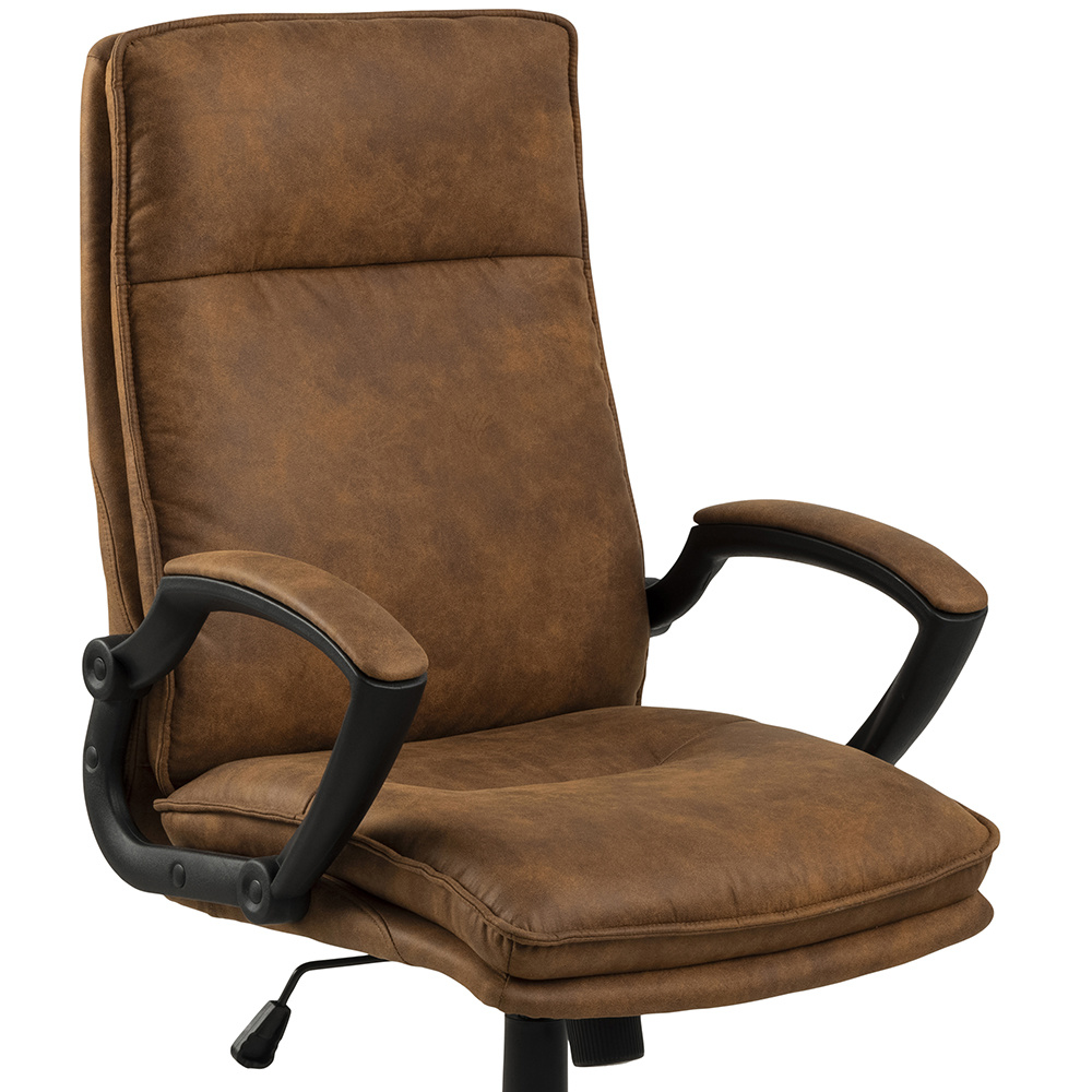 Bradie kantoorstoel met armleuningen bruin. Preston: 100% polyester, 350g/m2, Martindale >25.000, pilling note 4, colour fastness to light 4. "Pilling", Opvulling van de stof, gaat van 0-5, waar 5 het beste is. "Colour fastness to light", Kleurechtheid, gaat van 1-8, waar 8 het beste is.
