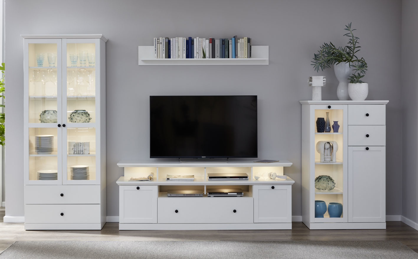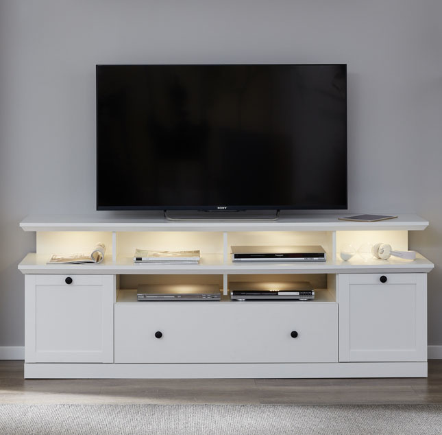 Brax TV-meubel met 1 tv plank, 2 deuren, 4 planken en 1 klep, wit.