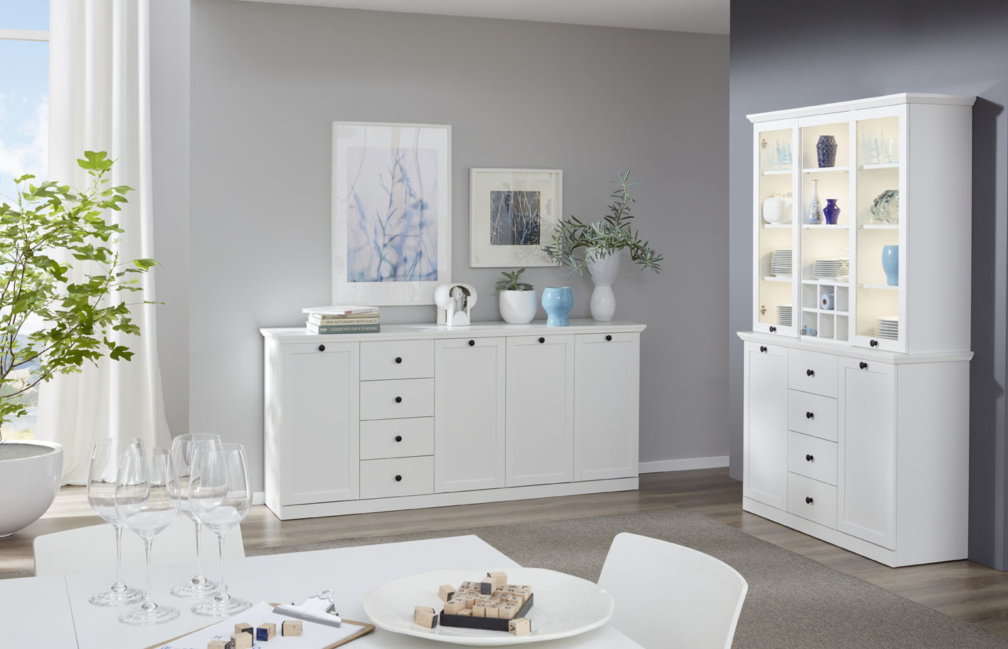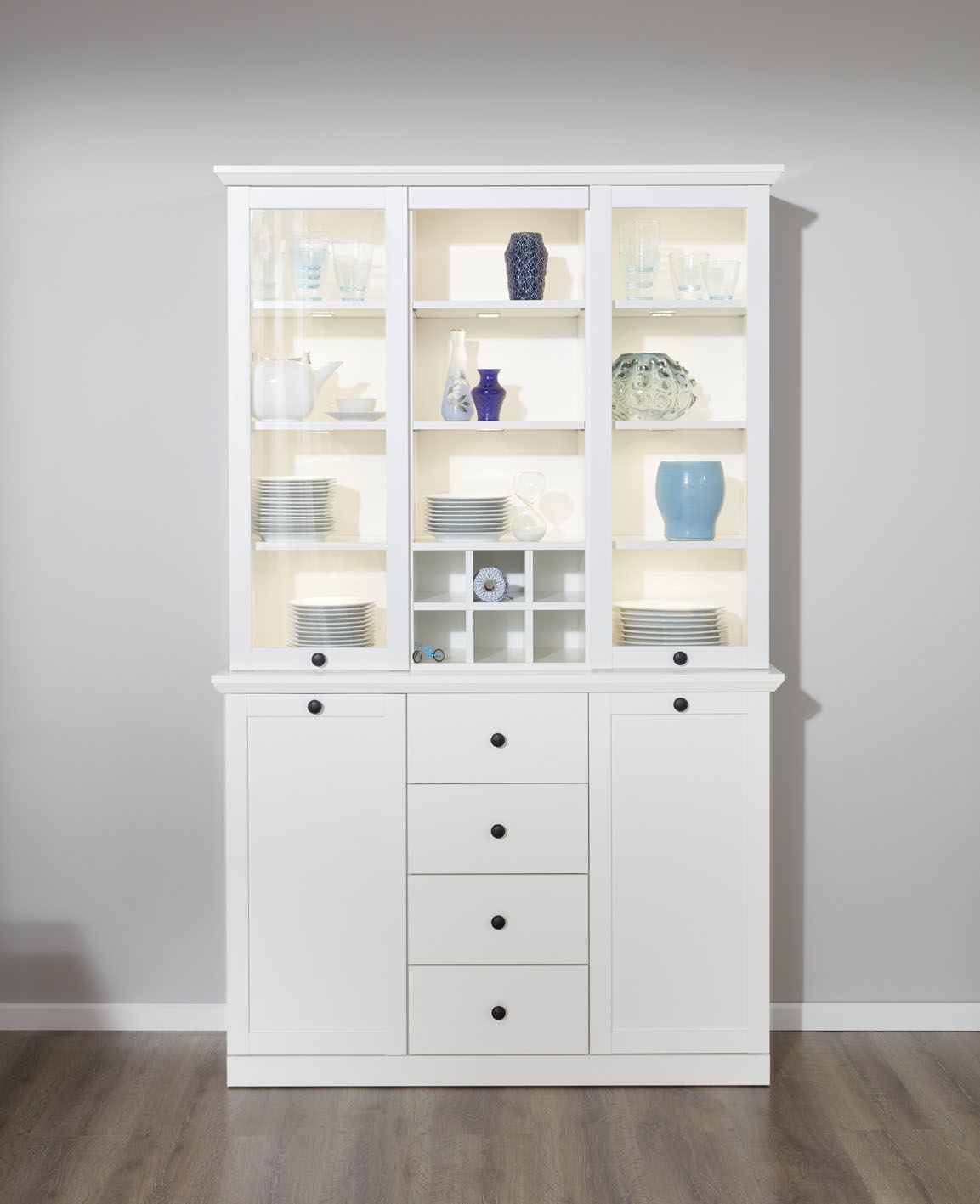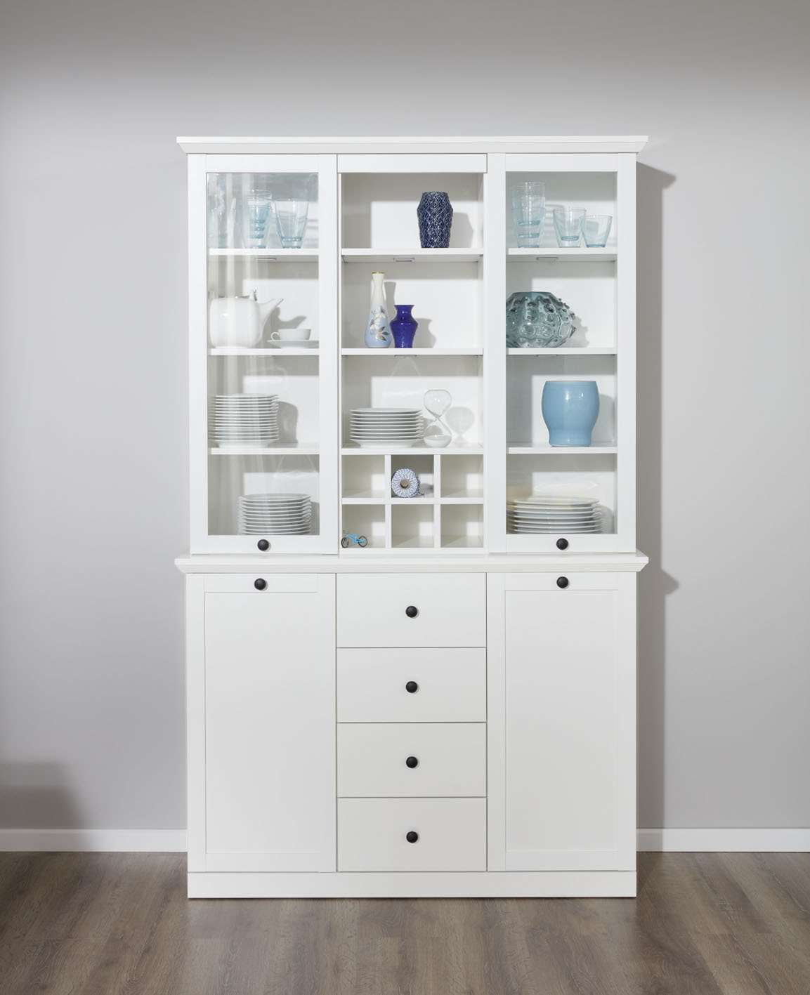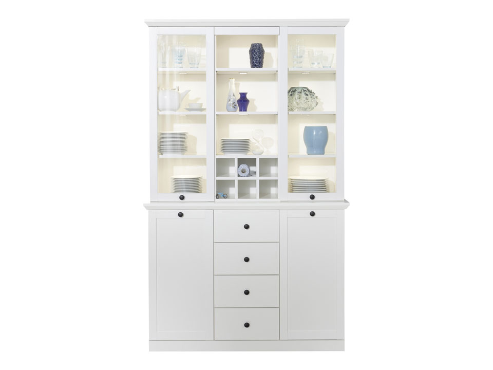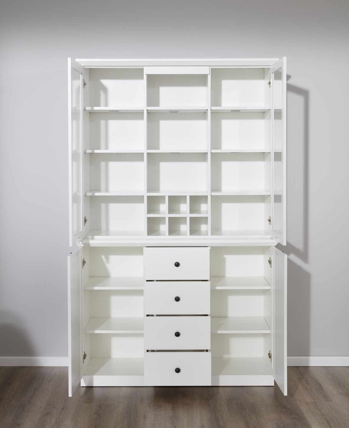 Brax vitrinekast 4 deuren, 4 lades en 9 planken, wit.