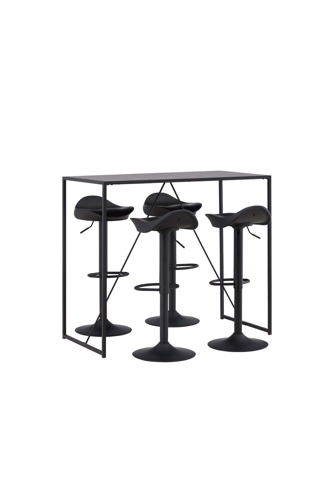 ebuy24 Brea barmeubelset bartafel zwart en 4 Adesto barstoelen zwart.