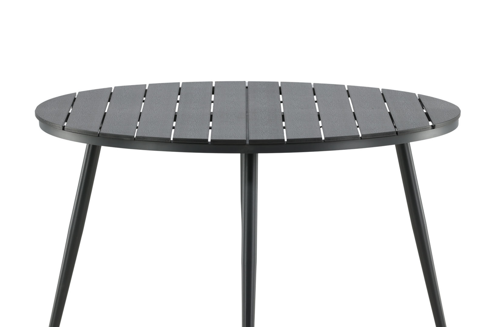Break eettafel tuin Ø120cm zwart.Afstand tussen tafelpoten - Lange zijde: 117 cm. Afstand tussen tafelpoten - korte zijde: 83 cm.