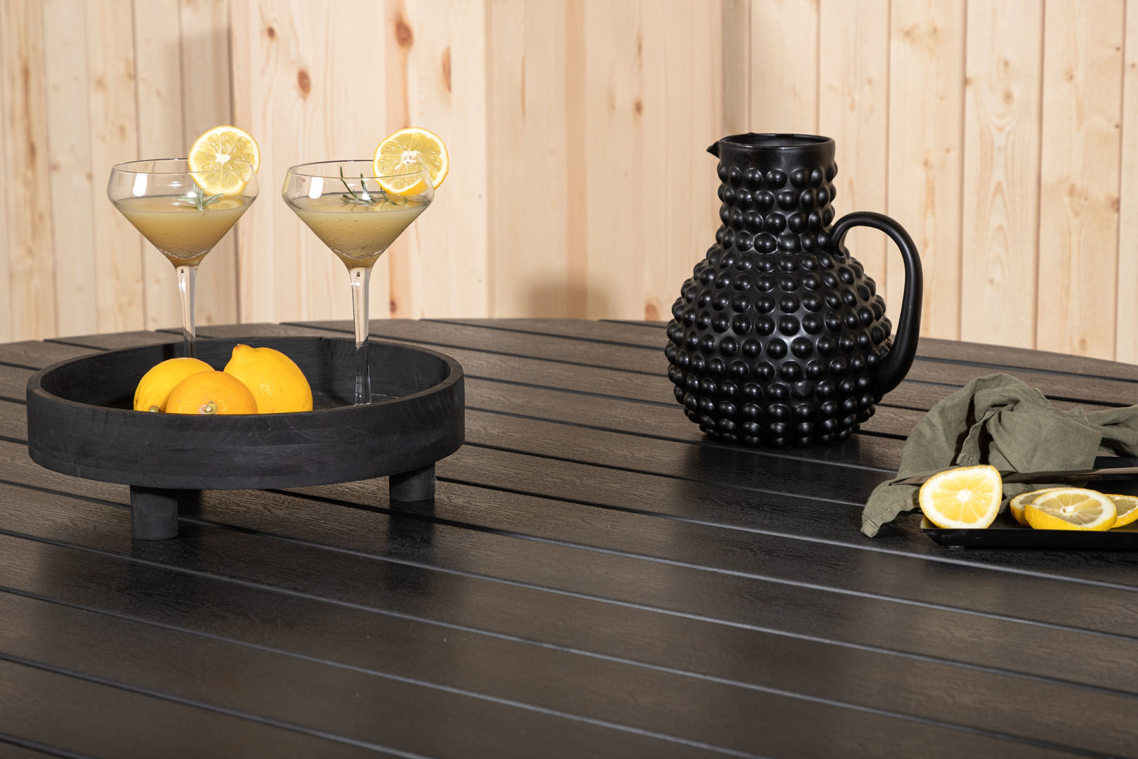 Break eettafel tuin Ø150cm zwart.Afstand tussen tafelpoten - Lange zijde: 147 cm. Afstand tussen tafelpoten - korte zijde: 104 cm.