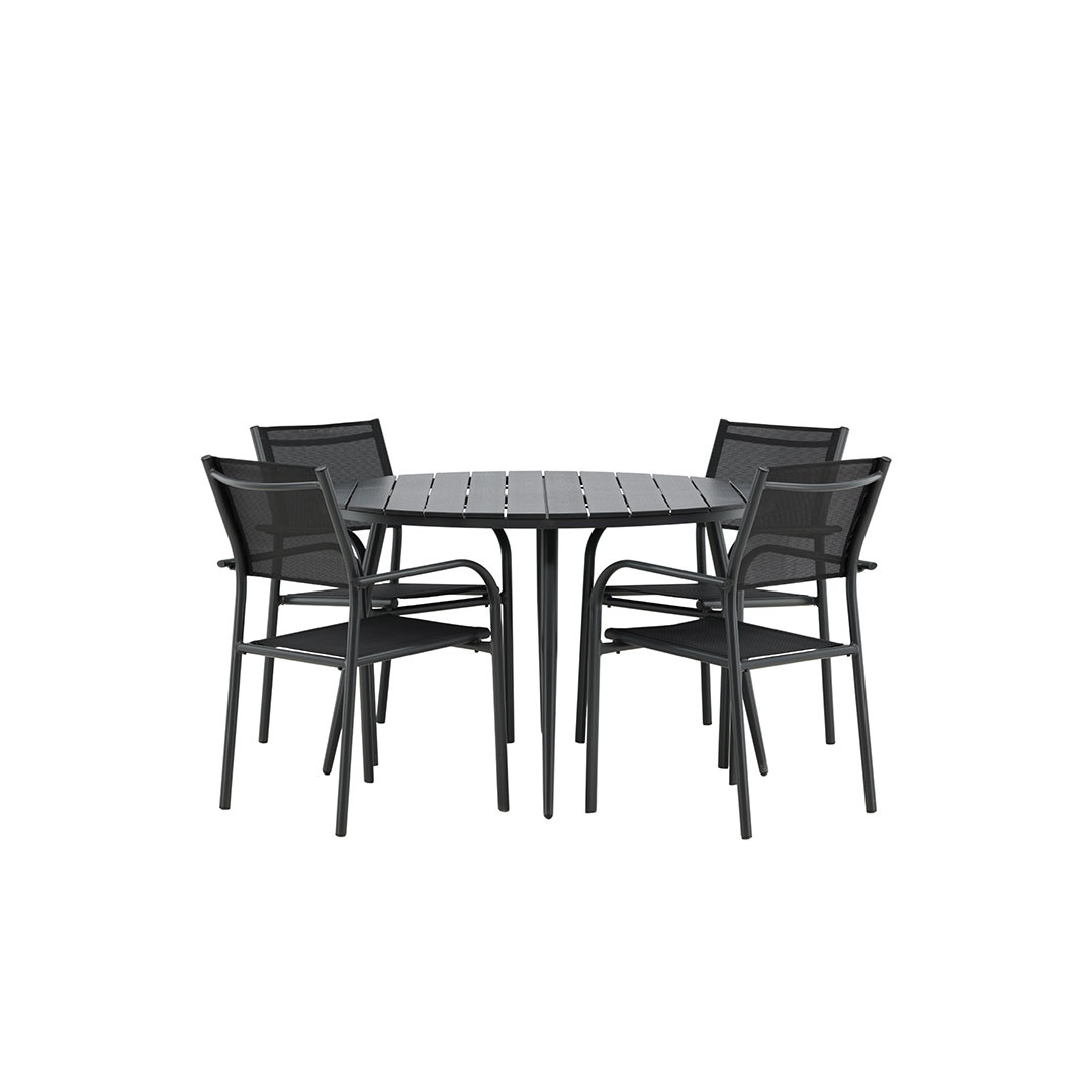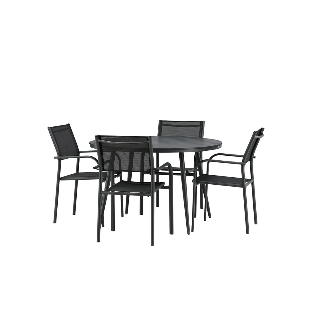 ebuy24 BreakSantorini tuinmeubelset 1 eettafel, 4 stoelen zwart.