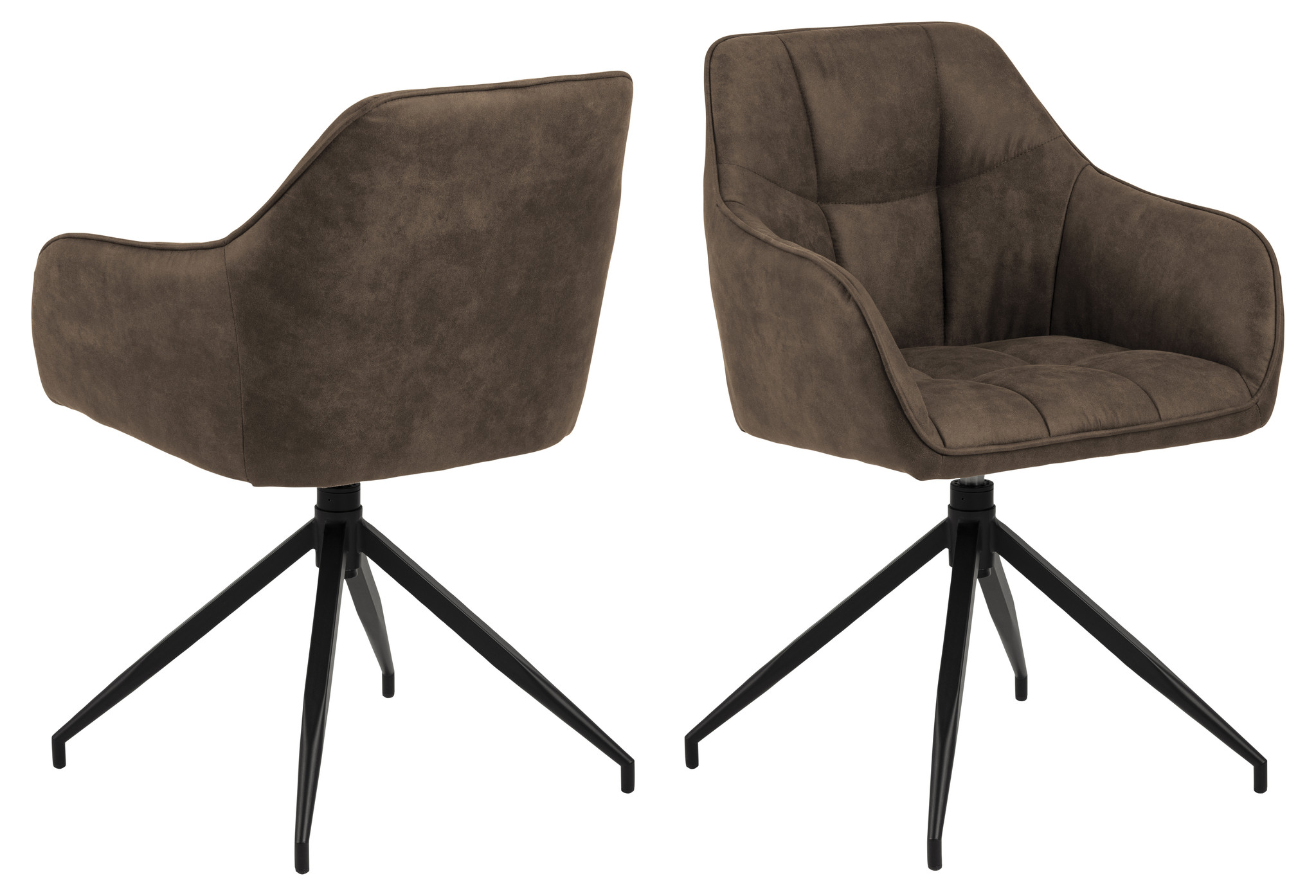 Brenny eetkamerstoel met armleuningen en draaifunctie bruin. Preston: 100% polyester, 350g/m2, Martindale >25.000, pilling note 4, colour fastness to light 4. "Pilling", Opvulling van de stof, gaat van 0-5, waar 5 het beste is. "Colour fastness to light", ...Lees uitgebreide product informatie