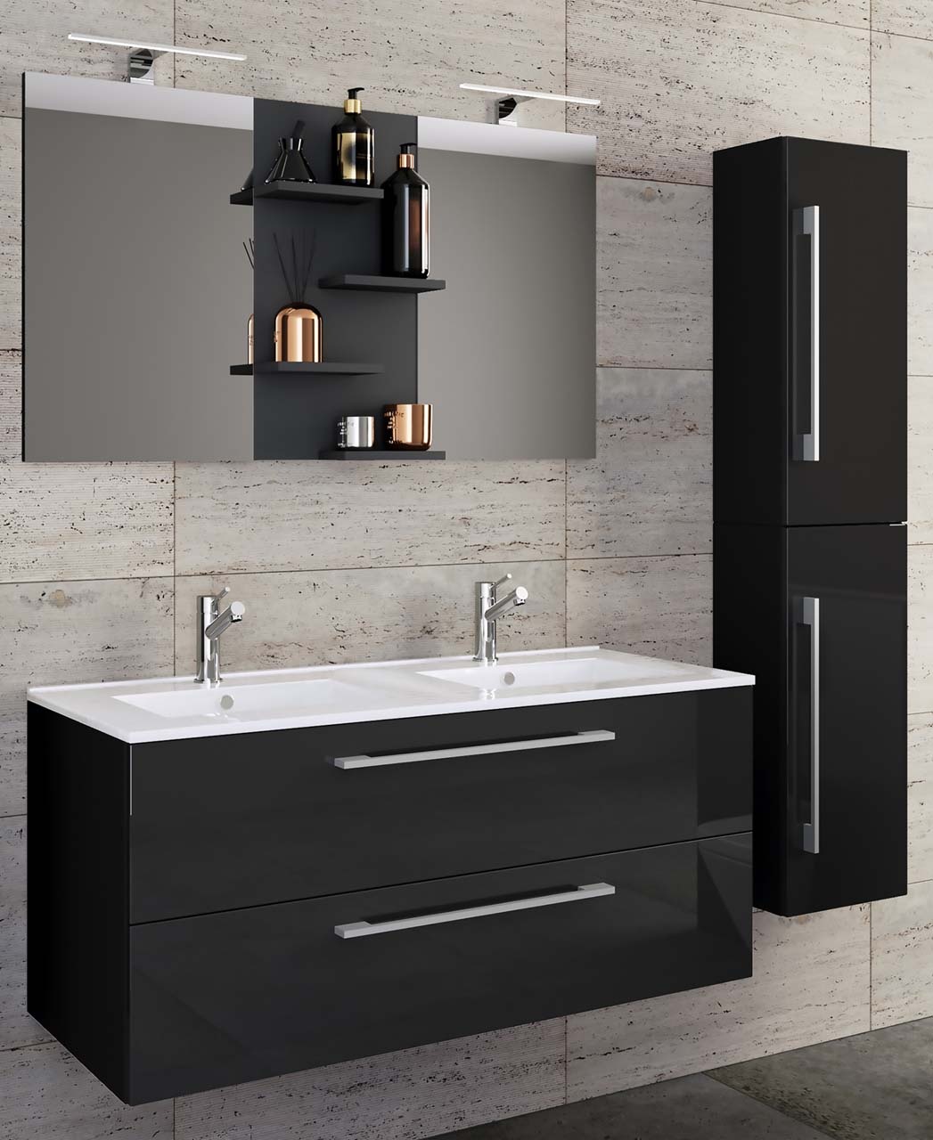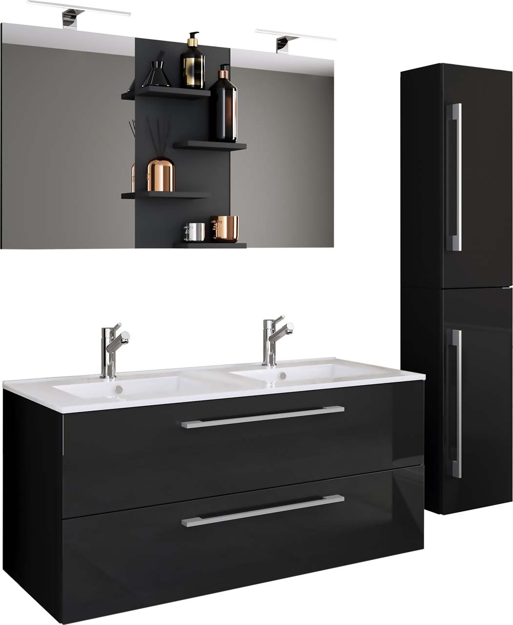BudasiS badkamer dubbele wastafel zwart. 3 delen. . Incl. wasbak. Zonder kraan. Wastafel: H 51 x B 111 x T 46 cm. Zonder licht. Spiegel: H 59 x B 112 cm . Kolomkast: H 150 x B 33 x T 22 cm. Je ontvangt meubels van een goede kwaliteit met een aangenaam comfort, gemaakt in een stijlvol en mooi design. Onze meubels zijn zeer aantrekkelijk geprijsd. Creëer uw eigen persoonlijke stijl met een nieuw meubel. Combineer met kleinmeubels of een paar mooie woonaccessoires. Hier verkrijg je de nieuwe woningtrends, zoals je ze in tijdschriften en magazines ziet. Bij ons vindt u unieke, praktische en comfortabele meubels met elk zijn eigen, mooi en apart design.