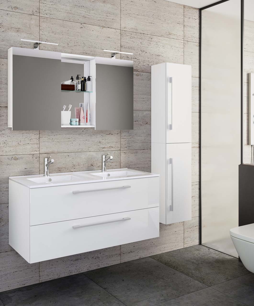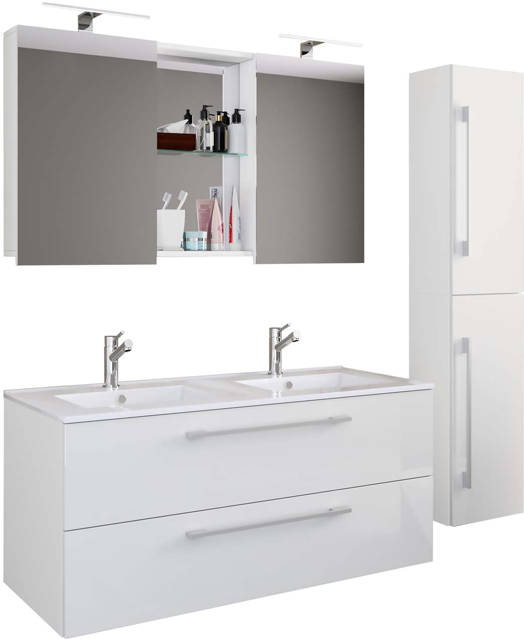 BudasiSS badkamer dubbele wastafel wit. 3 delen. . Incl. wasbak. Zonder kraan. Wastafel: H 51 x B 111 x T 46 cm. Zonder licht. Spiegelkast: H 59 x B 112 cm T 12 cm. Kolomkast: H 150 x B 33 x T 22 cm. Je ontvangt meubels van een goede kwaliteit met een aangenaam comfort, gemaakt in een stijlvol en mooi design. Onze meubels zijn zeer aantrekkelijk geprijsd. Creëer uw eigen persoonlijke stijl met een nieuw meubel. Combineer met kleinmeubels of een paar mooie woonaccessoires. Hier verkrijg je de nieuwe woningtrends, zoals je ze in tijdschriften en magazines ziet. Bij ons vindt u unieke, praktische en comfortabele meubels met elk zijn eigen, mooi en apart design.