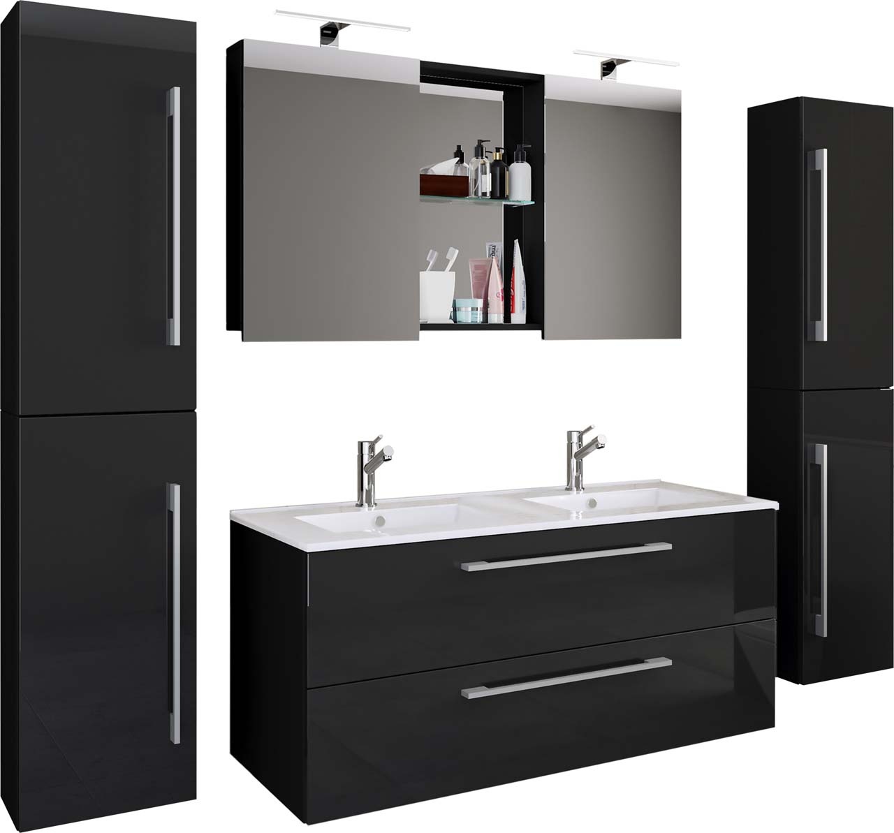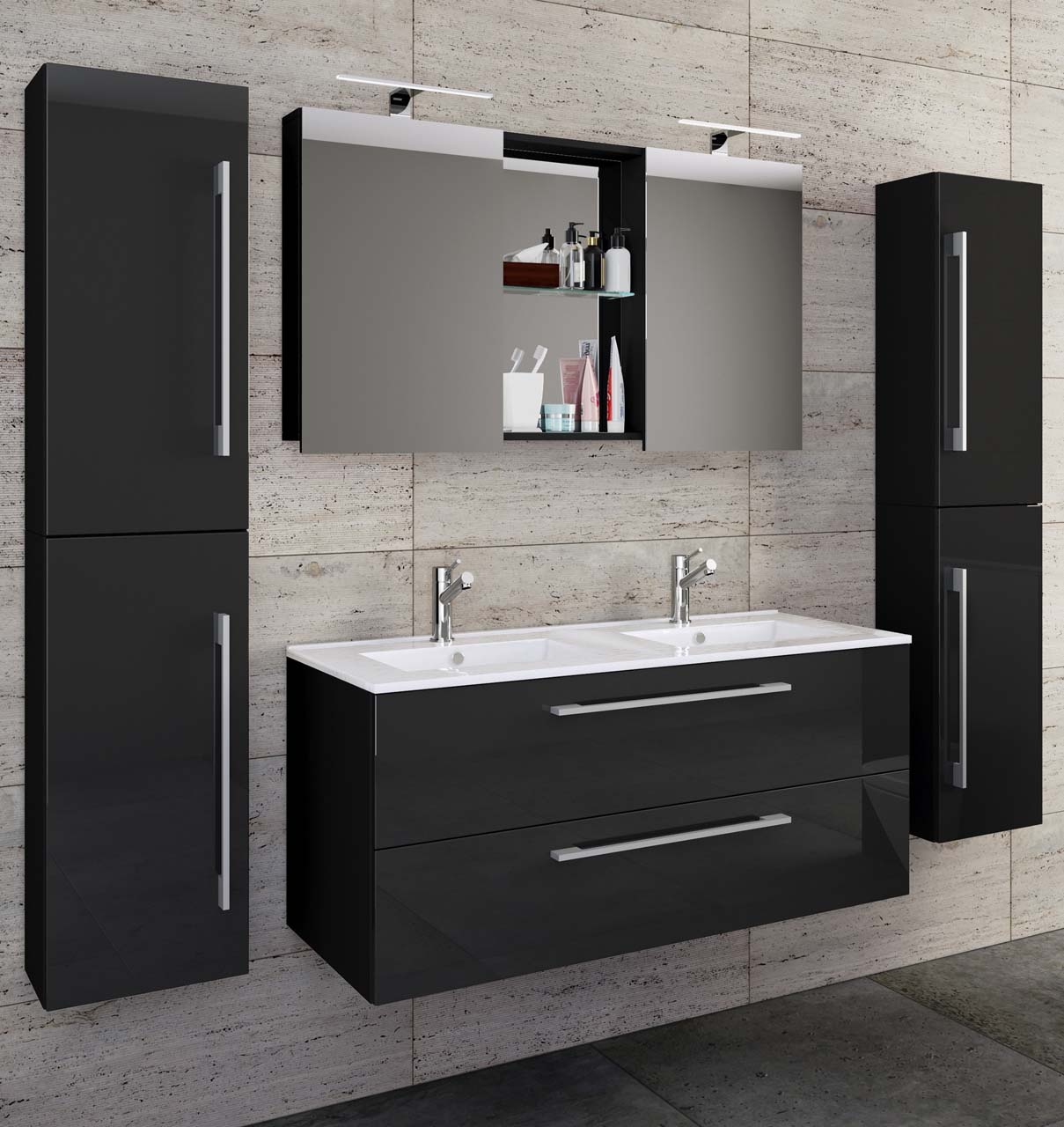 BudasiSS badkamer dubbele wastafel zwart. 4 delen. . Incl. wasbak. Zonder kraan. Wastafel: H 51 x B 111 x T 46 cm. Zonder licht. Spiegelkast: H 59 x B 112 cm T 12 cm. Kolomkast: H 150 x B 33 x T 22 cm. Je ontvangt meubels van een goede kwaliteit met een aangenaam comfort, gemaakt in een stijlvol en mooi design. Onze meubels zijn zeer aantrekkelijk geprijsd. Creëer uw eigen persoonlijke stijl met een nieuw meubel. Combineer met kleinmeubels of een paar mooie woonaccessoires. Hier verkrijg je de nieuwe woningtrends, zoals je ze in tijdschriften en magazines ziet. Bij ons vindt u unieke, praktische en comfortabele meubels met elk zijn eigen, mooi en apart design.