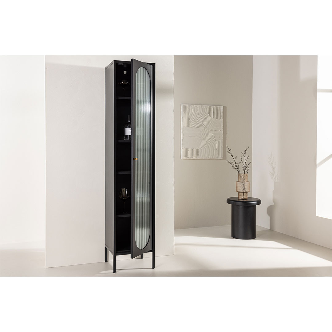 Cali vitrinekast 1 deur zwart is een vitrinekast in zwarte kleur die zowel stijl als functionaliteit in je huis brengt. Cali vitrinekast 1 deur zwart. Met de stalen kast Cali krijg je een smaakvolle en praktische opbergoplossing die stijl en functionaliteit combineert. De elegante zwarte kleur geeft de kast een tijdloos karakter dat uw interieur met elegantie zal aanvullen. De deur van de kast is gemaakt van gegolfd glas, wat een subtiele textuur en een unieke visuele dimensie aan het meubelstuk toevoegt. Geef uw interieur een upgrade met de stalen kast Cali en creëer een stijlvolle en georganiseerde sfeer in uw huis. Of je hem nu in de woonkamer, slaapkamer of kantoor plaatst, Cali zal een praktische en elegante aanvulling zijn op je interieur. Dit product is gemaakt met oog voor detail, wat zowel esthetische aantrekkingskracht als hoge duurzaamheid garandeert. Het is ontworpen met zowel functionaliteit als stijl in gedachten, waardoor het de perfecte keuze is voor elke kamer in uw huis. De gebruikte materialen zijn van hoge kwaliteit, waardoor het product een lange levensduur heeft en bestand is tegen dagelijks gebruik. Of het nu voor opslag is of als decoratieve toevoeging, dit product zal uw interieur naar een hoger niveau tillen en extra comfort en elegantie in uw huis brengen.