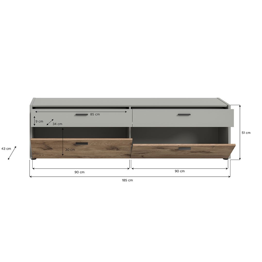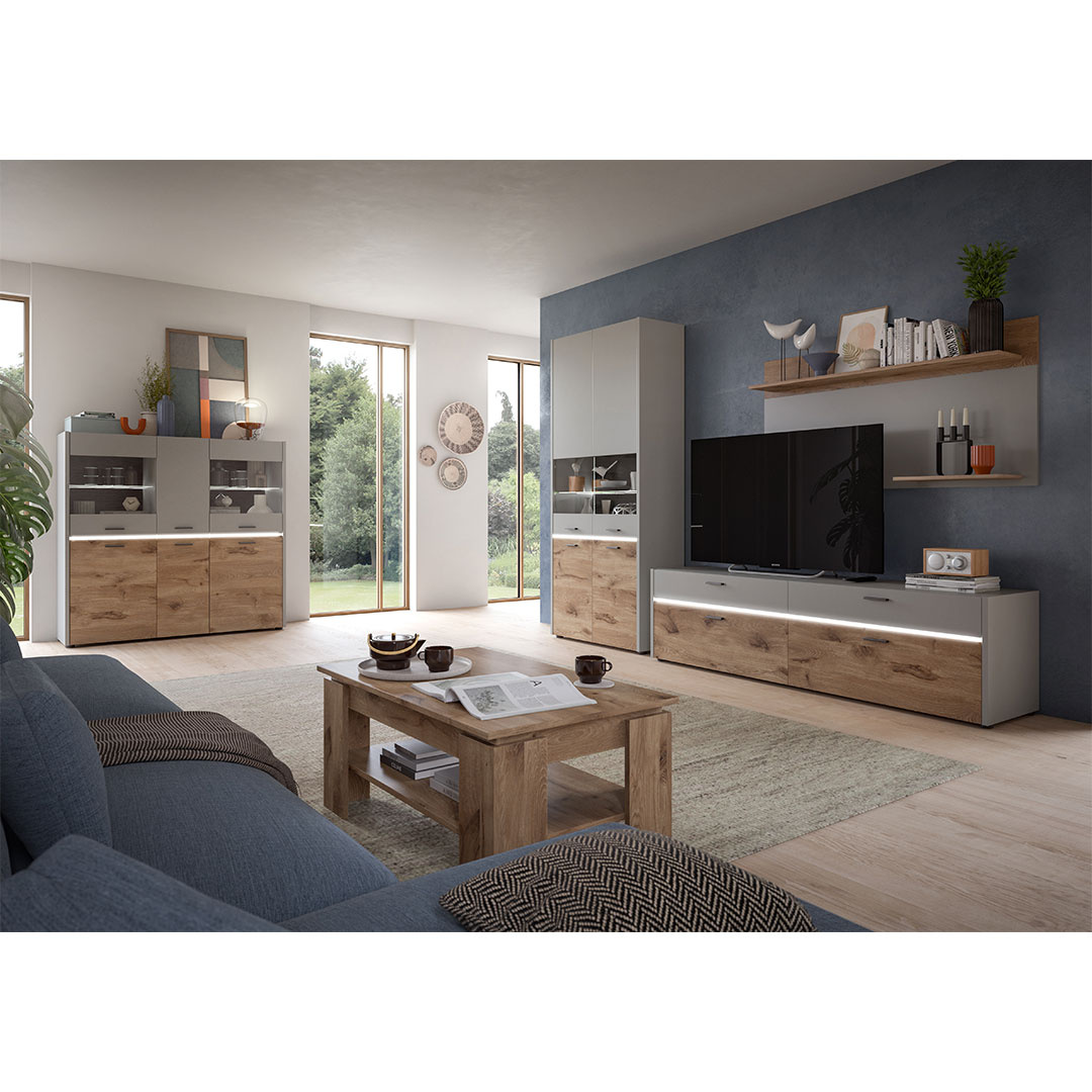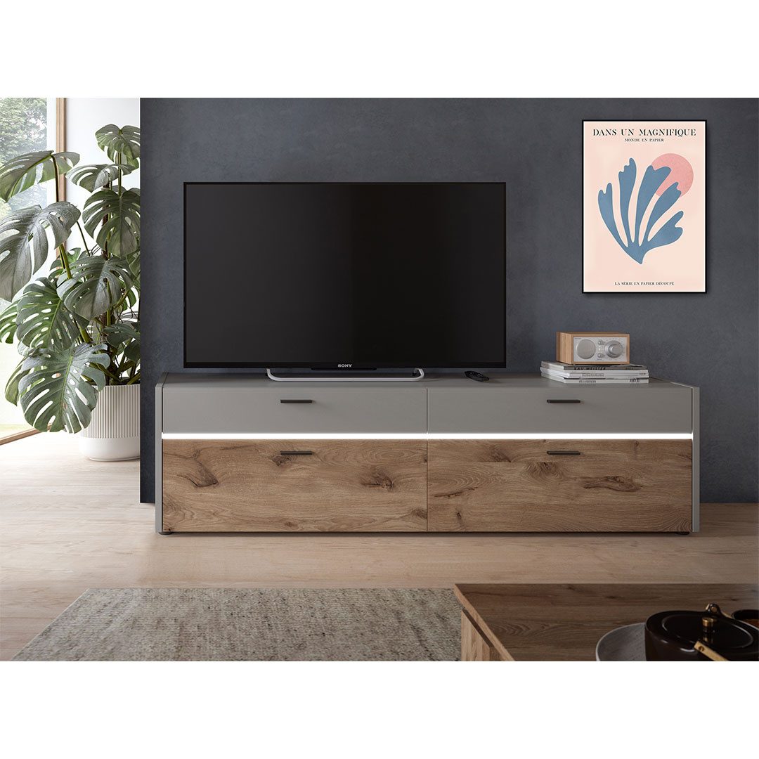 ebuy24 Celino TV-meubel 2 laden 2 kleppen incl. LED-verlichting lichtgrijs.