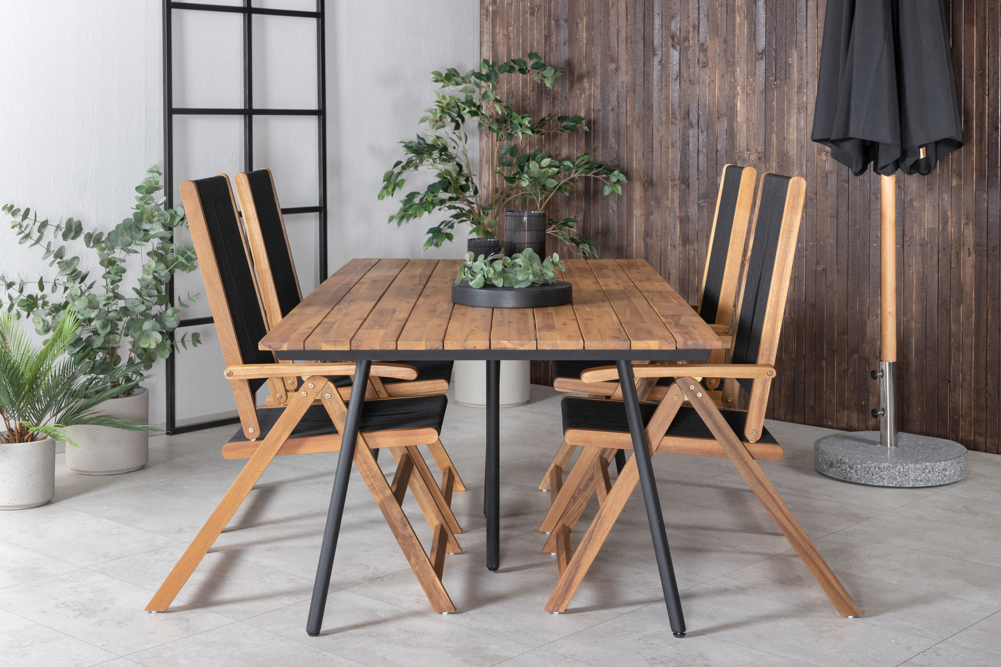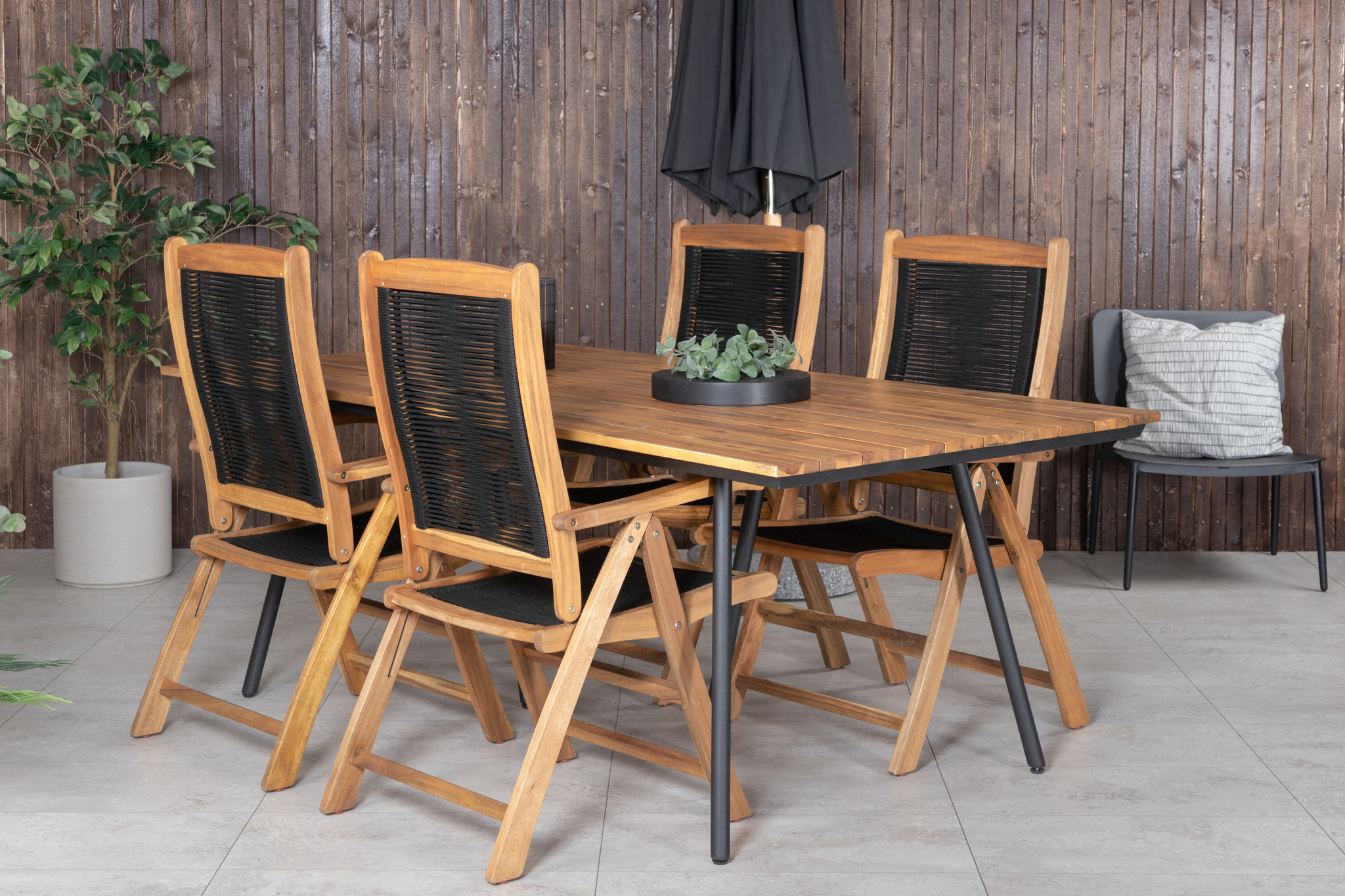 Chan eettafel tuin geolied teak look, zwart.Afstand tussen tafelpoten - Lange zijde: 158 cm. Afstand tussen tafelpoten - korte zijde: 82 cm.