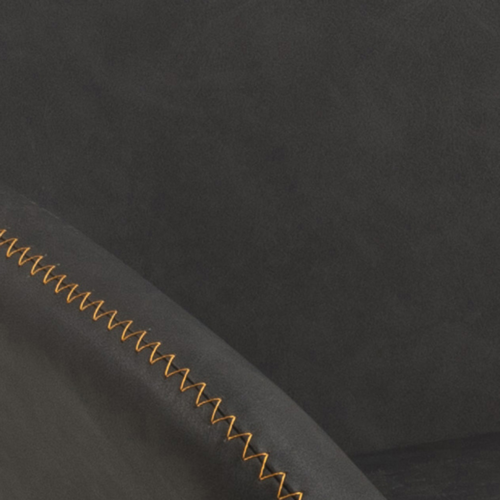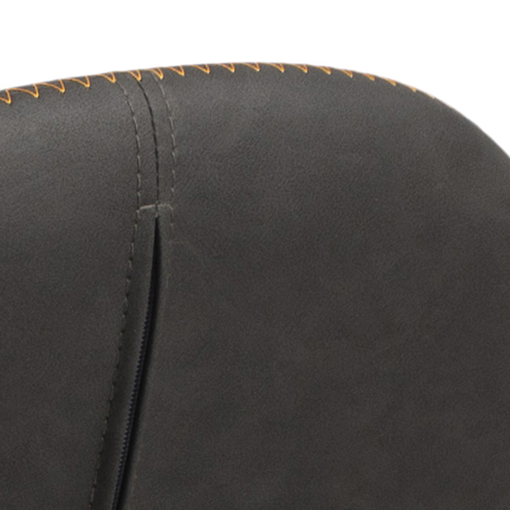 Materiaal: PU kunstleer duif grijs PU, contrasterende stiksel oranje, gepoedercoat onderstel, zwart.