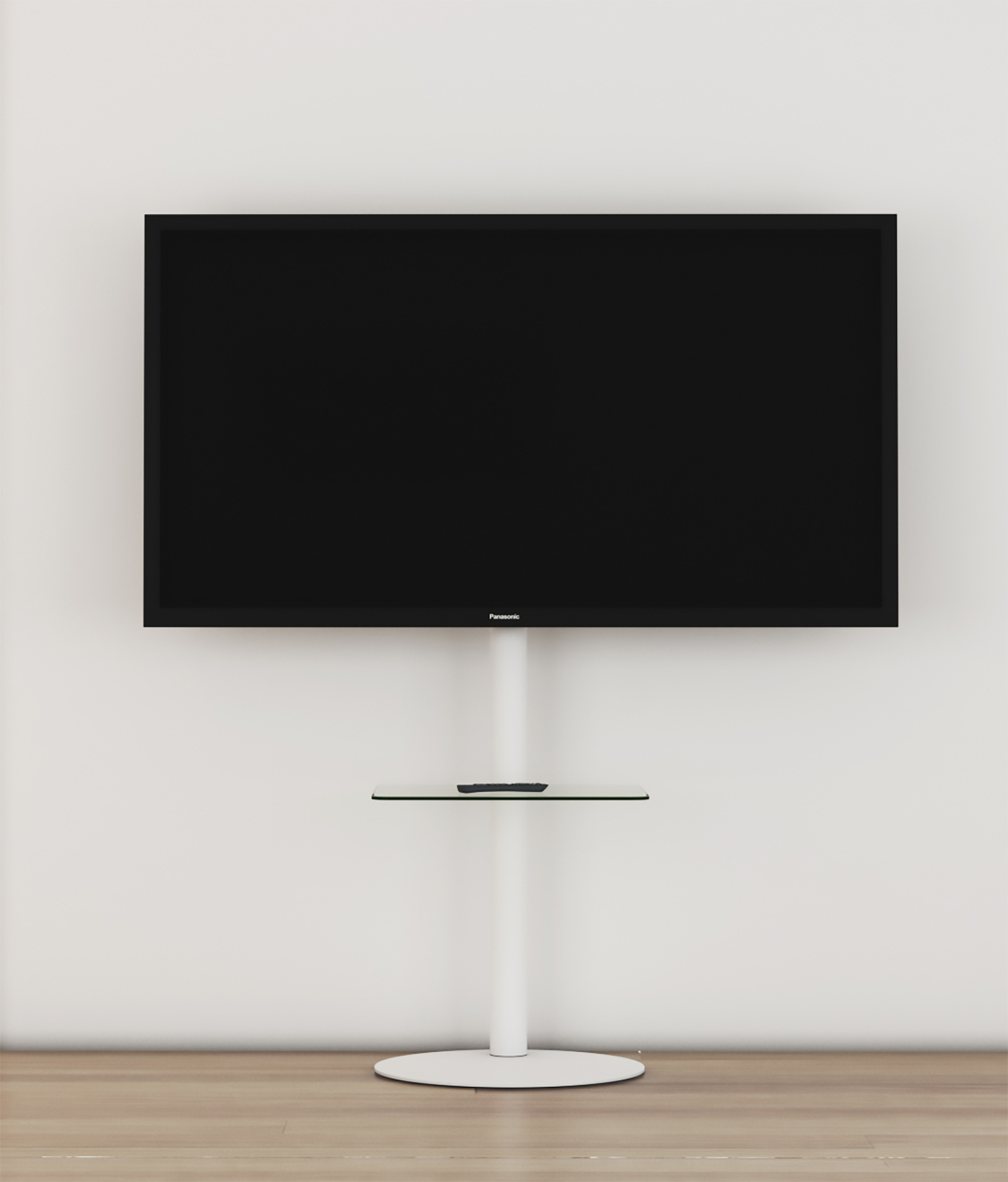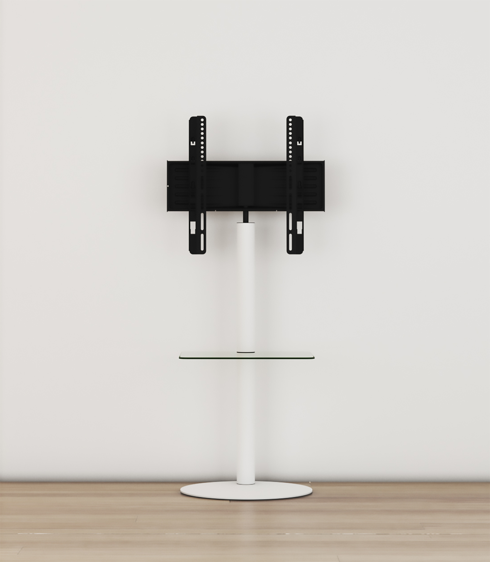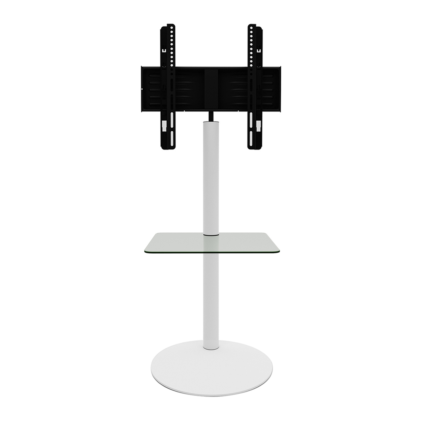 ebuy24 Cirla TV-meubel met 1 plank, ronde basis, Wit, helder glas.