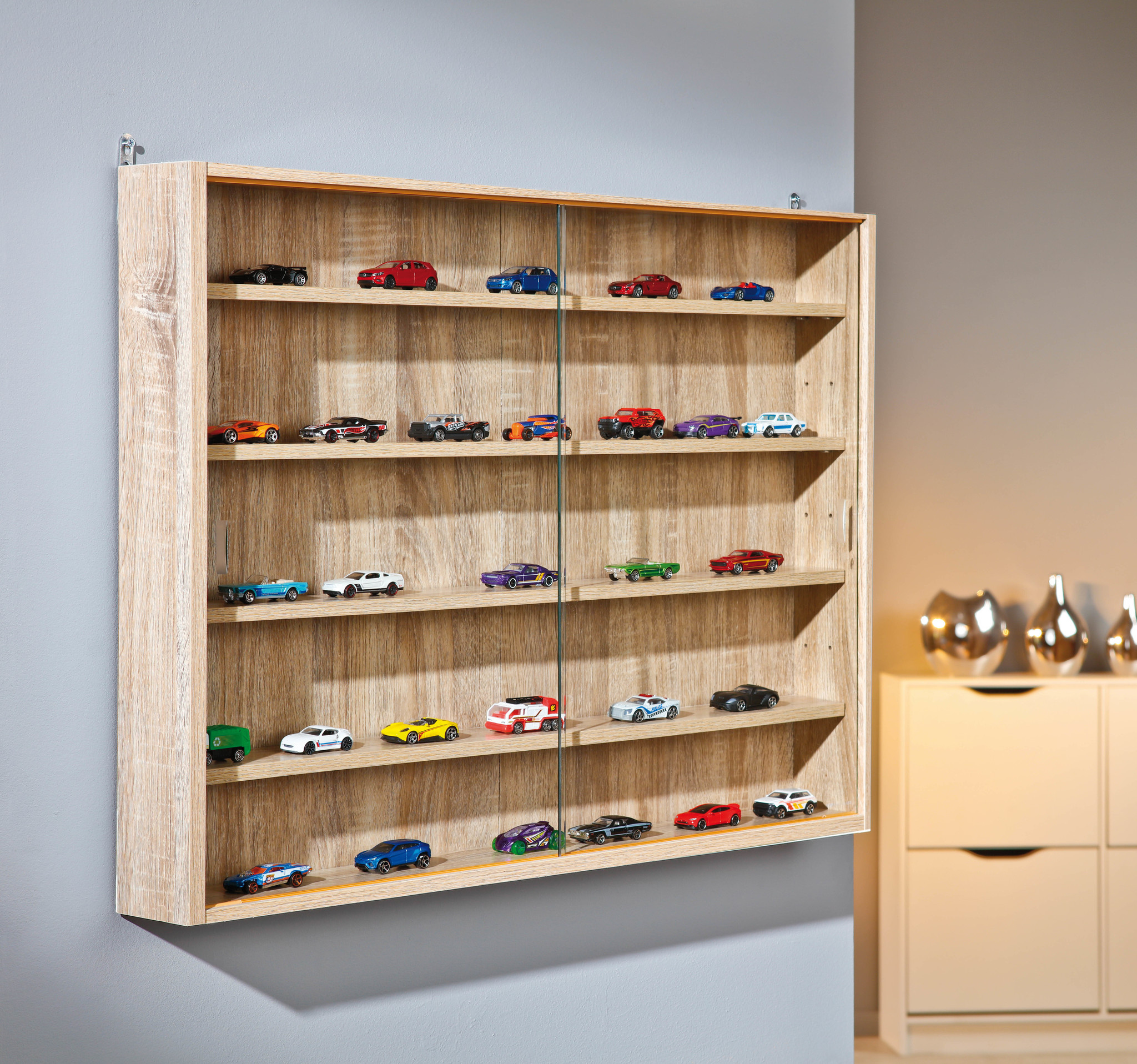 Comit vitrinekast voor wandmontage, 2 glazen deuren Sonoma eiken decor.