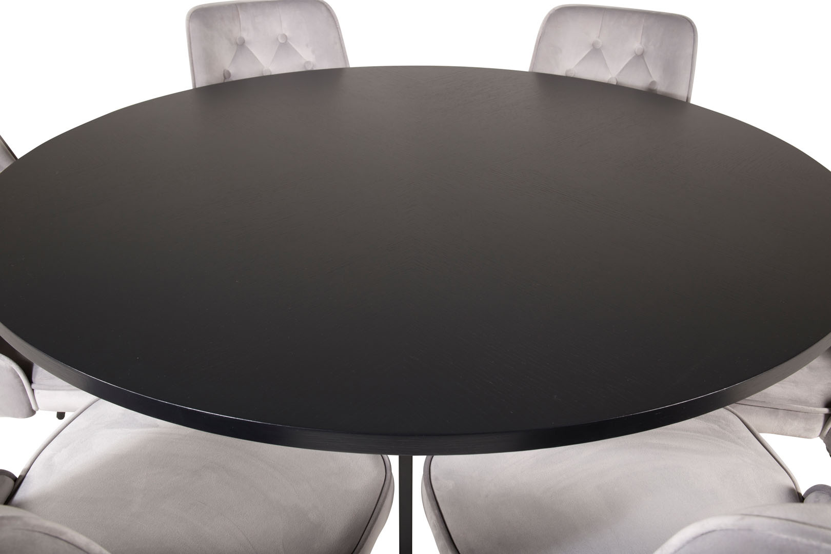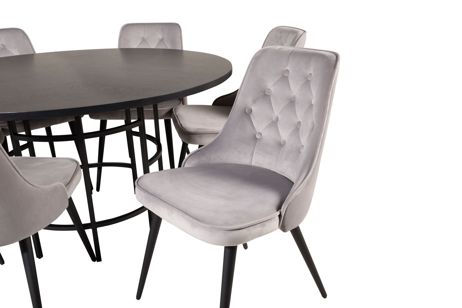 ebuy24 Copenhagen eethoek eetkamertafel bruin en 6 Velvet Deluxe eetkamerstal velours lichtgrijs.