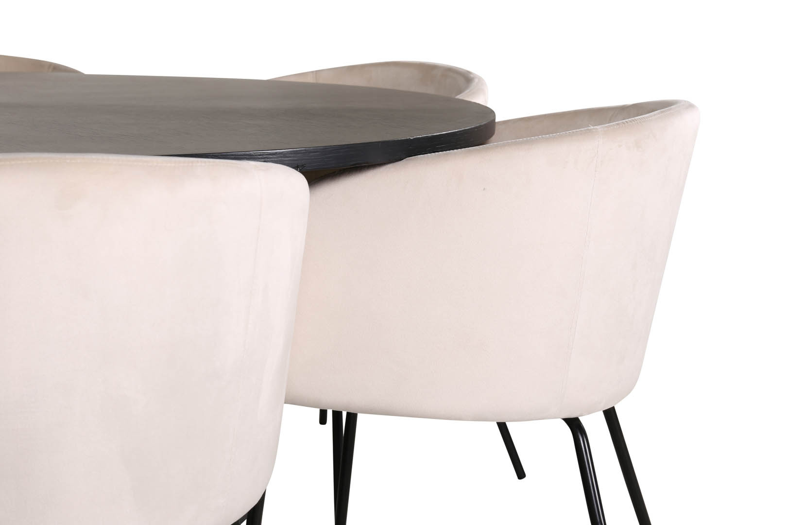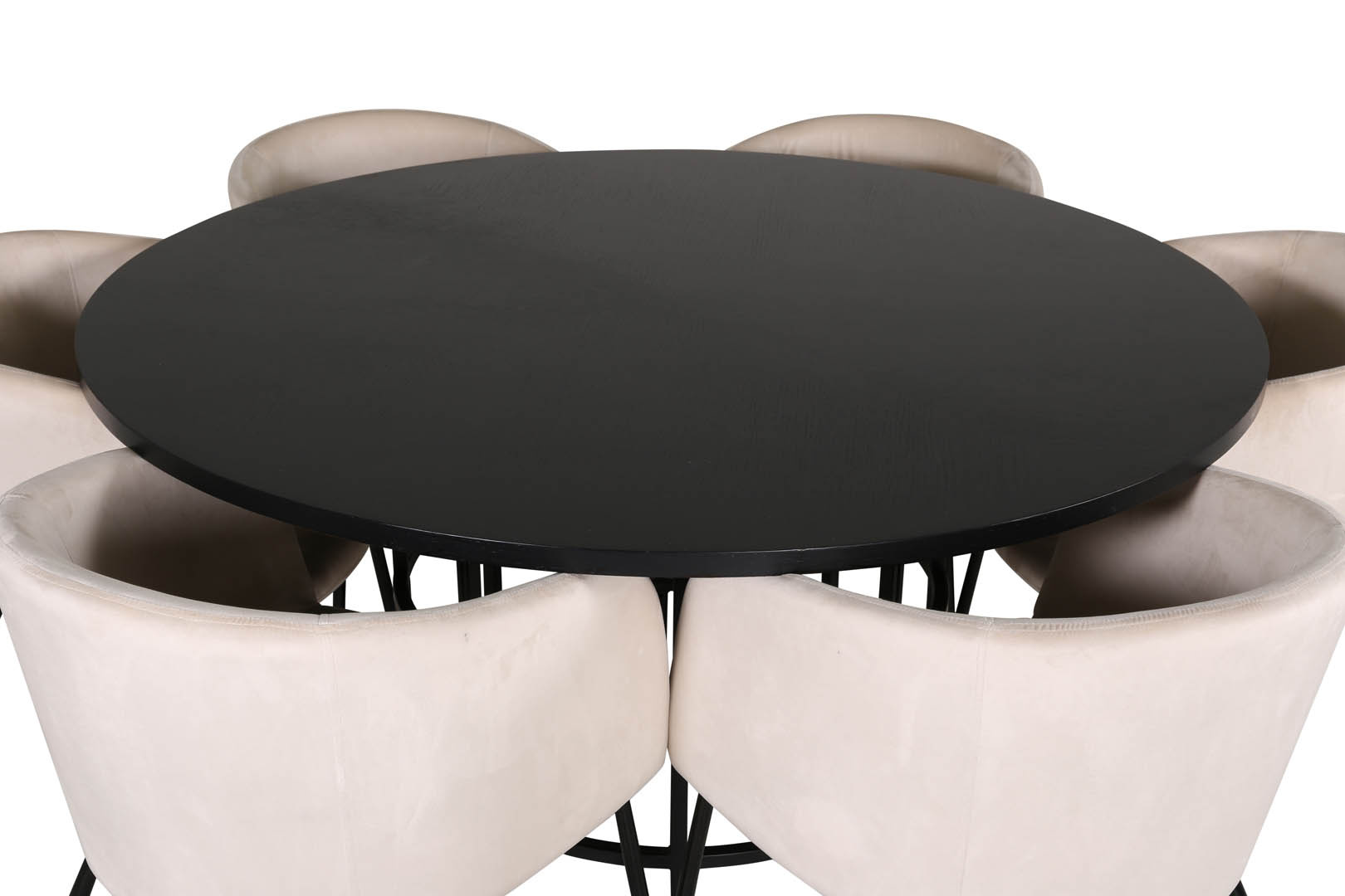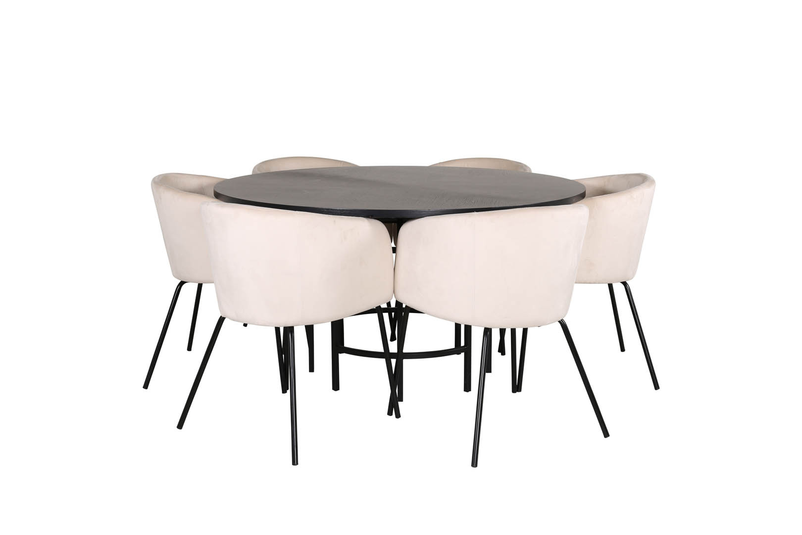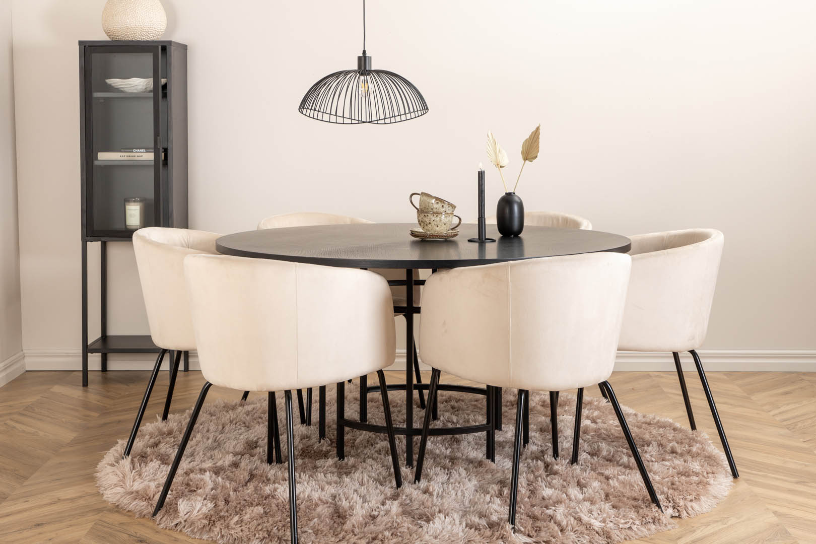 ebuy24 Copenhagen eethoek eetkamertafel bruin en 6 Berit eetkamerstal velours beige.